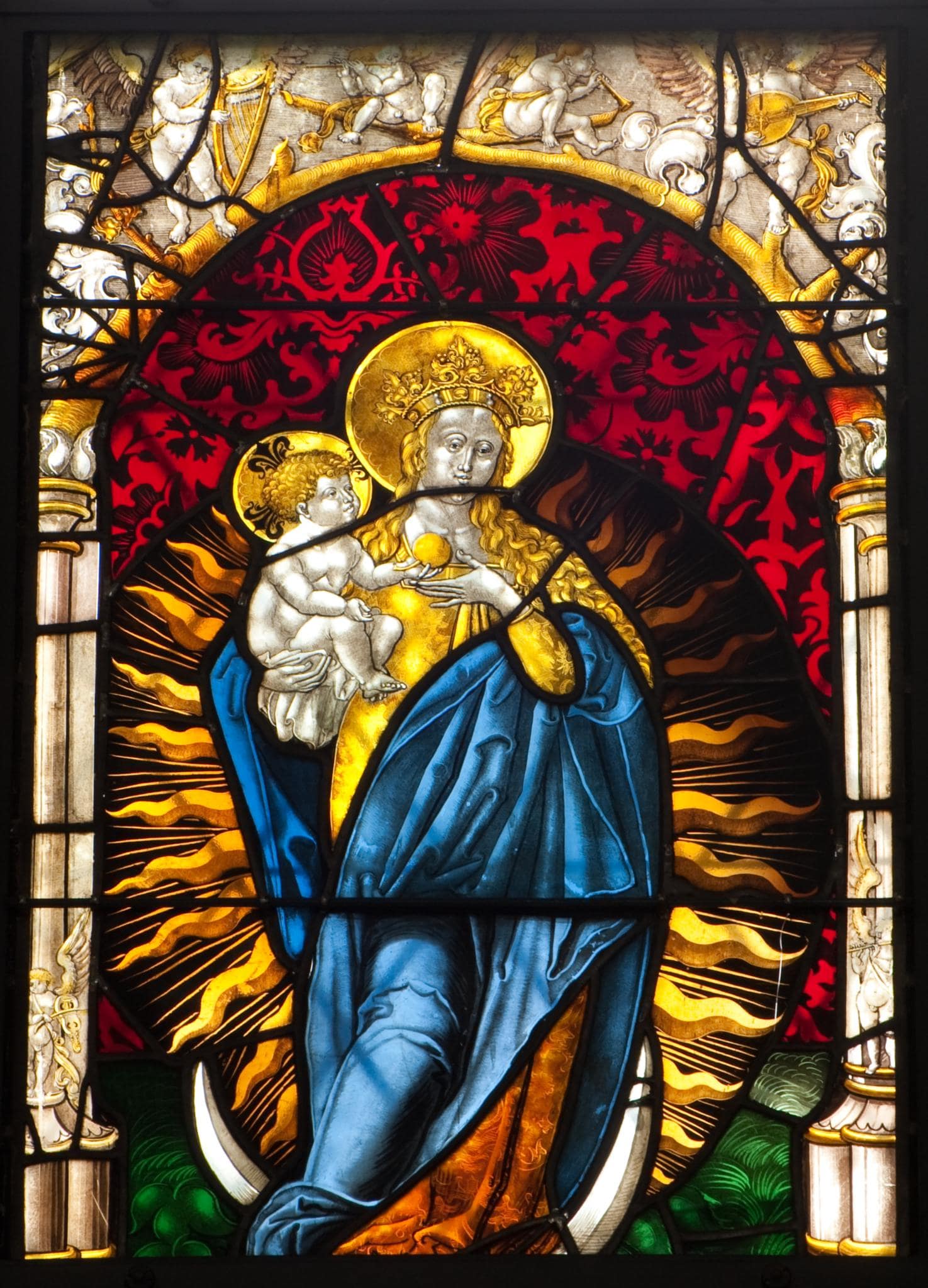 Figurenscheibe mit Madonna im Strahlenkranz