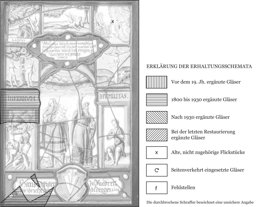 Das Glasgemälde thematisiert in mehreren Sinnbildern den Gehorsam und den Ungehorsam als Grundlage des rechtschaffenen ("Recht schaffenden") bzw. des sündhaften Lebensweges. Das hochrechteckige Mittelbild zeigt zwei voneinander abgewendete Gestalten, links Moses mit den zehn Geboten und rechts einen unbekannten Propheten (Aaron?). Um diese legen sich in Form eines Triumphbogens sieben kleinere Figurenszenen. Davon zeigt das zentrale Oberbild die Erschaffung Evas aus Adams Seite. Daran schliesst sich links eine Szene an, die einen in Gebetshaltung knienden Mann unter dem strahlenden Himmel ("Coelum") zeigt (Moses im Gebet). Darunter folgen Adam und Eva beim Sündenfall im Paradies, auf die sich offenbar der darüber stehende Bildtitel "Lapsus" (Fehler) bezieht, sowie unter der Bezeichnung "Infernum" ein Teufel, der eine verdammte Seele ins Höllenfeuer stösst. Auf der gegenüberliegenden Seite sind von oben nach unten die Verkündigung an Maria (ergänzt), Christus am Kreuz sowie eine mit gefalteten Händen sitzende Figur als Verkörperung der "Humilitas" (Gehorsam) dargestellt. Zur Erläuterung dient die Legende in der roten Rollwerkkartusche am blauen Bogen über den beiden Hauptgestalten. Die Sockelzone füllt die Tafel mit dem Namen des Stifters, dessen Wappen in deren Zentrum platziert ist.