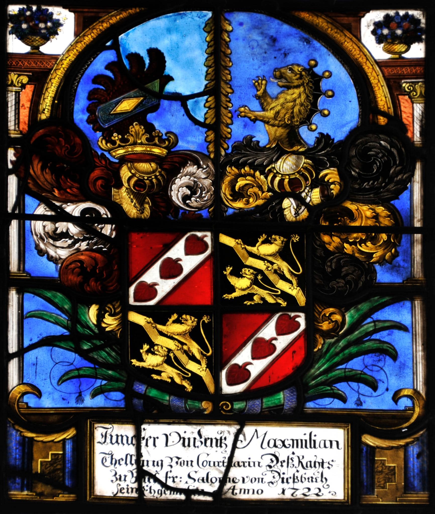 Juncker Vinzentz Maxmilian / Thellung Von Court[l]arin Deβ Rahts / Zu Biel fr: Salome von Dieβbach / Sein Ehgemal[in] Anno 1722.