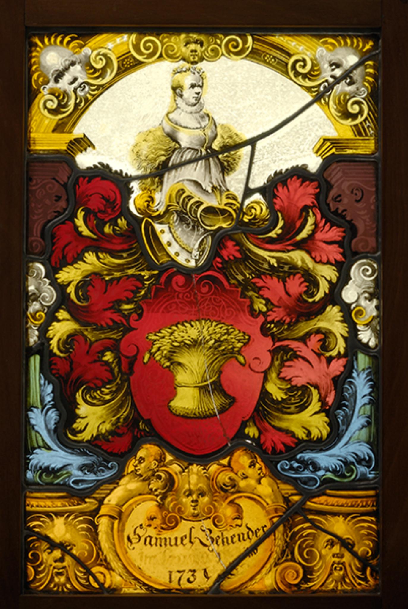 Die Inschrift der vorliegenden Scheibe wurde nachträglich, vielleicht im Jahr 1731, kalt übermalt und verändert. Der in der damals erneuerten Inschrift genannte Samuel Zehender (1701–1735) heiratete 1725 Anna Maria Weyermann, verliess aber 1732 seine Familie und trat in spanische Kriegsdienste ein (vgl. Wegeli 1934).