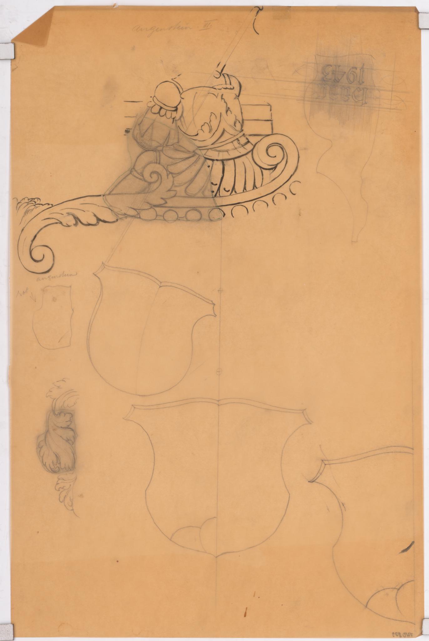 Der Restaurator setzte aufgrund dieser Schäden auch Ergänzungen ein (vgl. hierzu das Schema zu BE_1477). Bei der vorliegenden Pause ist das ergänzte Stück punktiert und nur mit Bleistift gezeichnet und nicht mit Tusche nachgezogen.