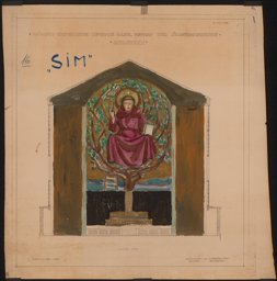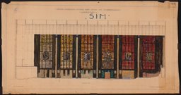 Poncet réalise une autre maquette (MP_63.02) représentant les six verrières de la paroi occidentale de l'église. Cette maquette propose le détail de la deuxième fenêtre représentée sur ce projet.