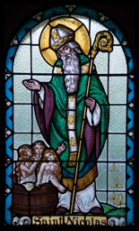 11H(NICHOLAS) · Nicolas, évêque de Myre (ou de Bari); attributs possibles : ancre, vaisseau, trois boules d'or (sur un livre), trois bourses, trois enfants dans un saloir, trois pucelles