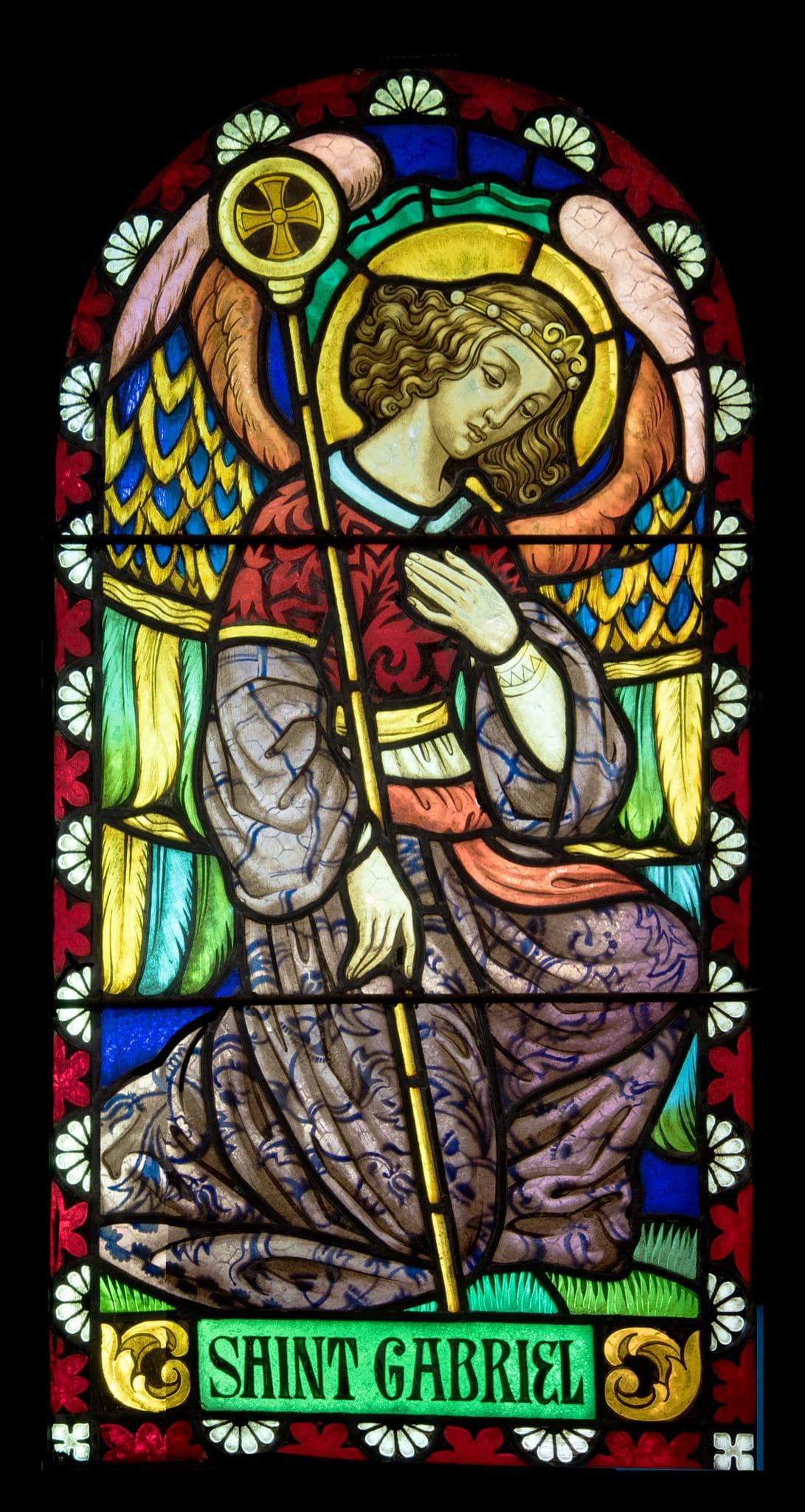 Dans le Fonds de l’atelier Kirsch & Fleckner, il existe deux cartons (KF_1069 et KF_1076) figurant les archanges Raphaël et Gabriel. Pour une raison qui nous échappe, le nom de l’archange a été interverti sur les deux vitraux du choeur. Sur le carton KF_1069 illustrant l’archange Gabriel on trouve le nom de Raphaël.