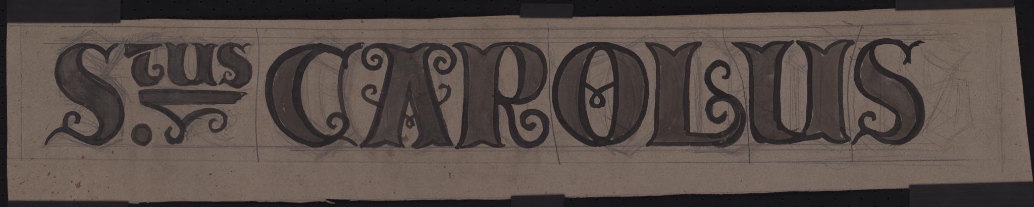 Cartouche comprenant le prénom de saint Charles Borromée en latin.