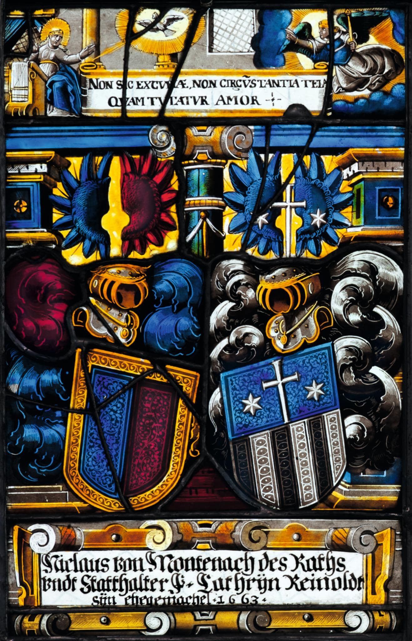 Stifterinschrift: Niclaus von Montenach des Raths / vndt Statthalter. F. Cathrÿn Reinoldt / sÿn ehegemachel. 1663.