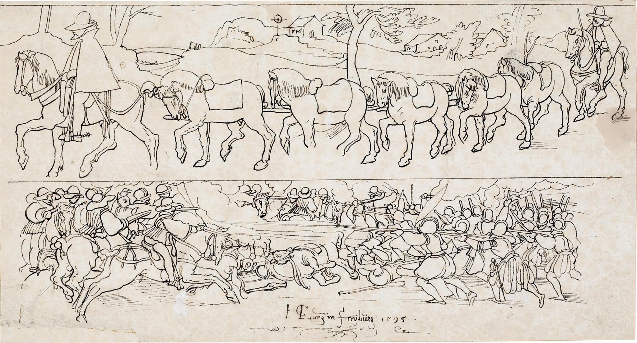 Oberbildentwürfe 1595: Pferde- und Schlachtenszene