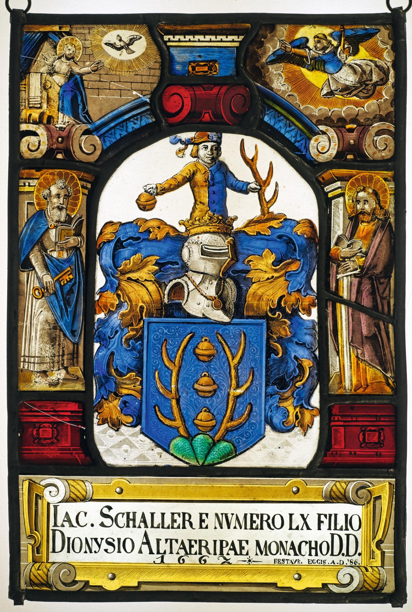 Stifterinschrift von 1886: Iac. Schaller e nvmero lx filio / Dionysio Altaeripae monacho D.D. / 1662.