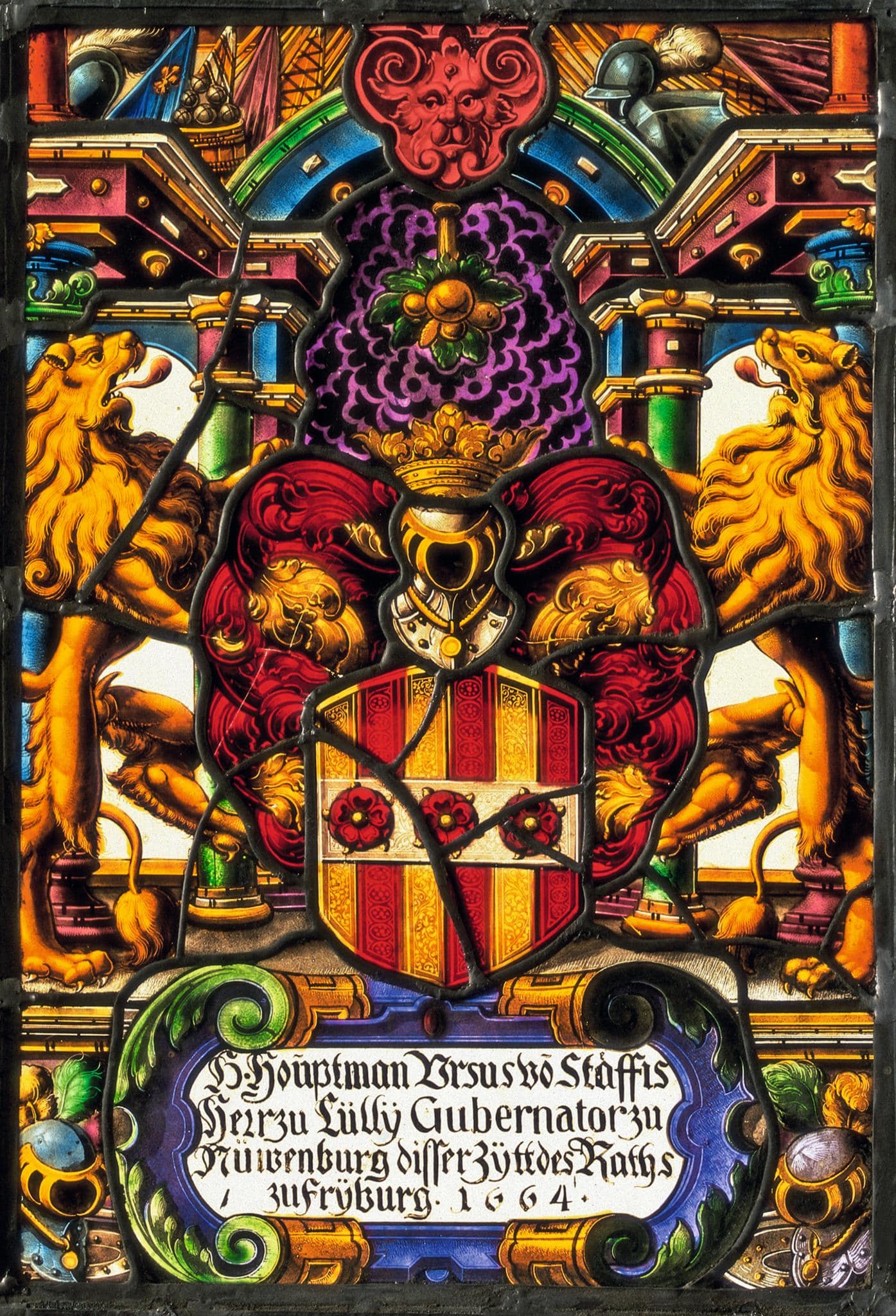 Bergmann, Uta. Die Freiburger Glasmalerei des 16.–18. Jahrhunderts / Le vitrail fribourgeois du XVIe au XVIIIe siècle (Corpus vitrearum Schweiz, Reihe Neuzeit, Bd. 6 / époque moderne vol. 6). 2 Bde / vol. Bern et al. 2014. Bd. 2. Kat.-Nr. 150.