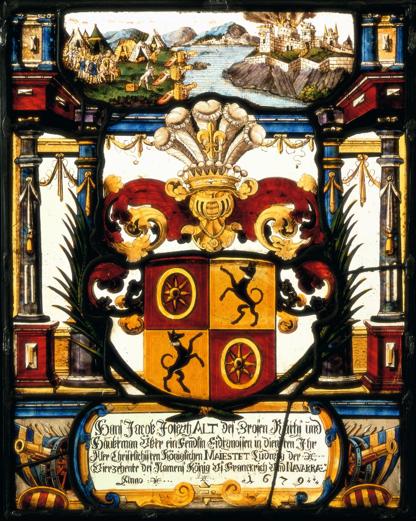 Bergmann, Uta. Die Freiburger Glasmalerei des 16.–18. Jahrhunderts / Le vitrail fribourgeois du XVIe au XVIIIe siècle (Corpus vitrearum Schweiz, Reihe Neuzeit, Bd. 6 / époque moderne vol. 6). 2 Bde / vol. Bern et al. 2014. Bd. 2. Kat.-Nr. 163.