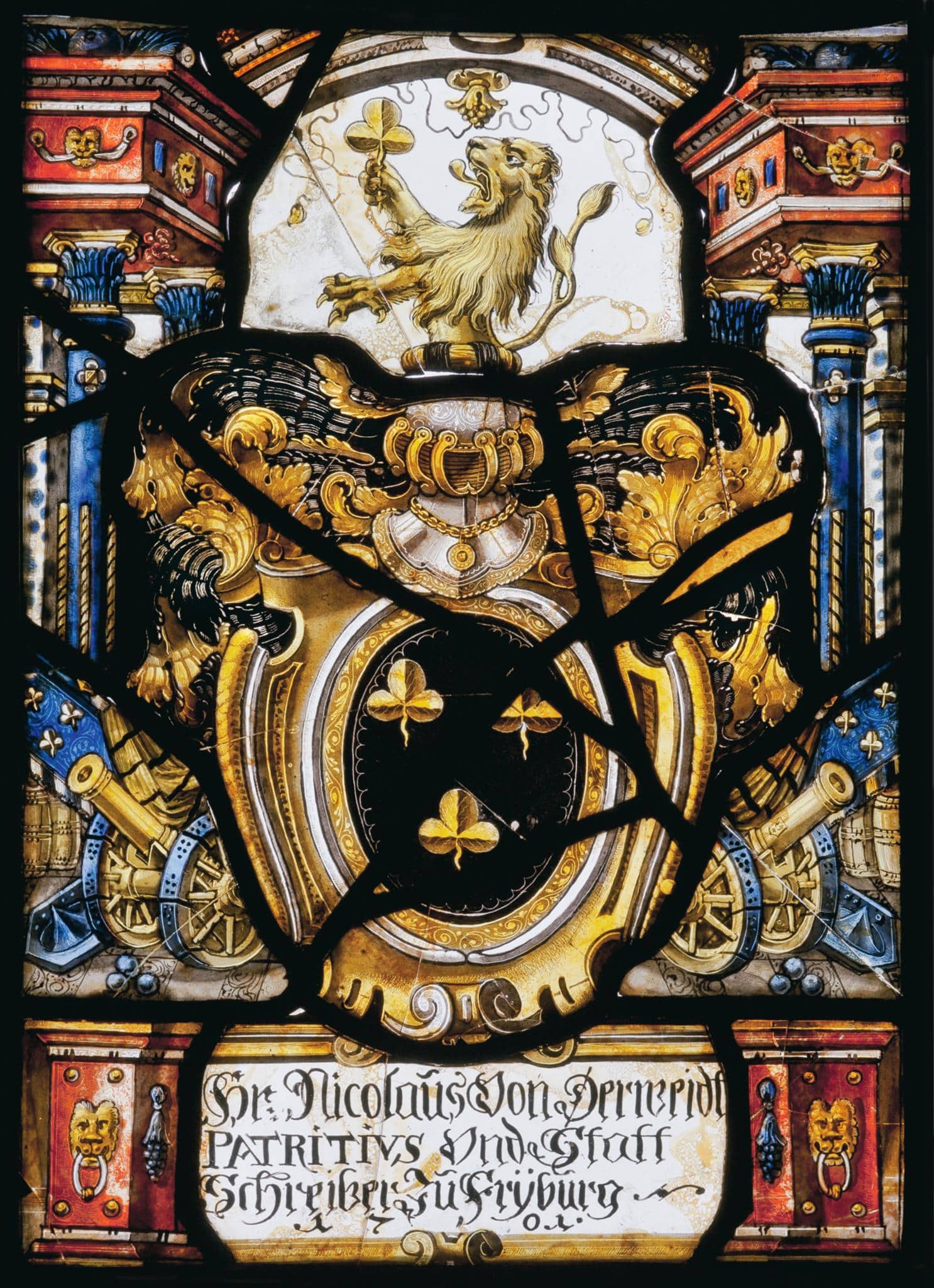 Bergmann, Uta. Die Freiburger Glasmalerei des 16.–18. Jahrhunderts / Le vitrail fribourgeois du XVIe au XVIIIe siècle (Corpus vitrearum Schweiz, Reihe Neuzeit, Bd. 6 / époque moderne vol. 6). 2 Bde / vol. Bern et al. 2014. Bd. 2. Kat.-Nr. 198.