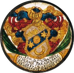 Die vorliegende Scheibe gehört mit sieben weiteren Rundscheiben (FR_212, FR_213, FR_215, FR_216, FR_217, FR_218, FR_219) zu einer Serie, die 1722/23 anlässlich der zweiten Erweiterungsphase in die Wallfahrtskapelle Notre-Dame-de-Compassion in La Roche gestiftet wurde.