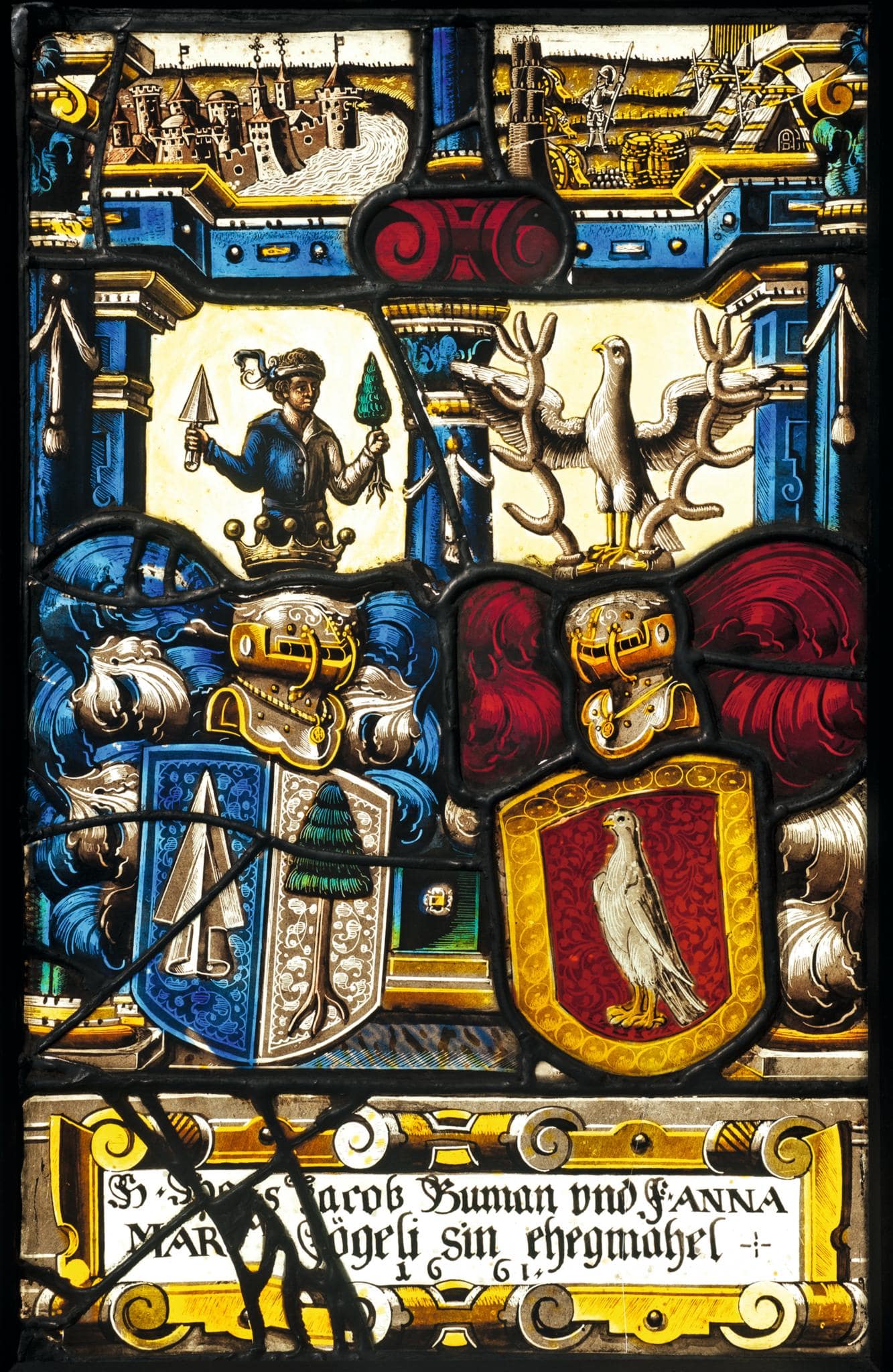 Stifterinschrift: H. Hans Jacob Buman vnd F. ANNA MAR[IA] Fögeli sin ehegmahel / 1661. [verschoben].