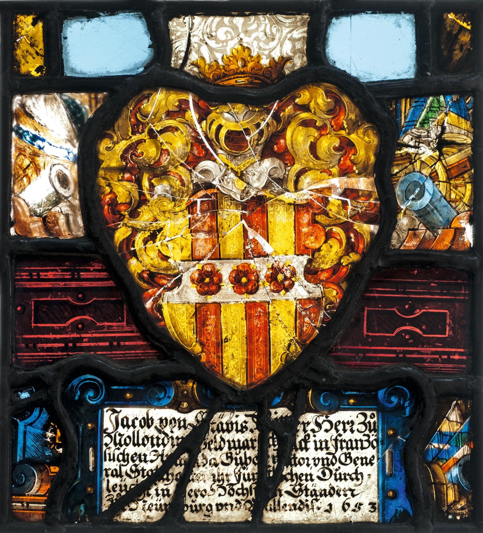 Fragmentarische Wappenscheibe Jacques d’Estavayer 1653