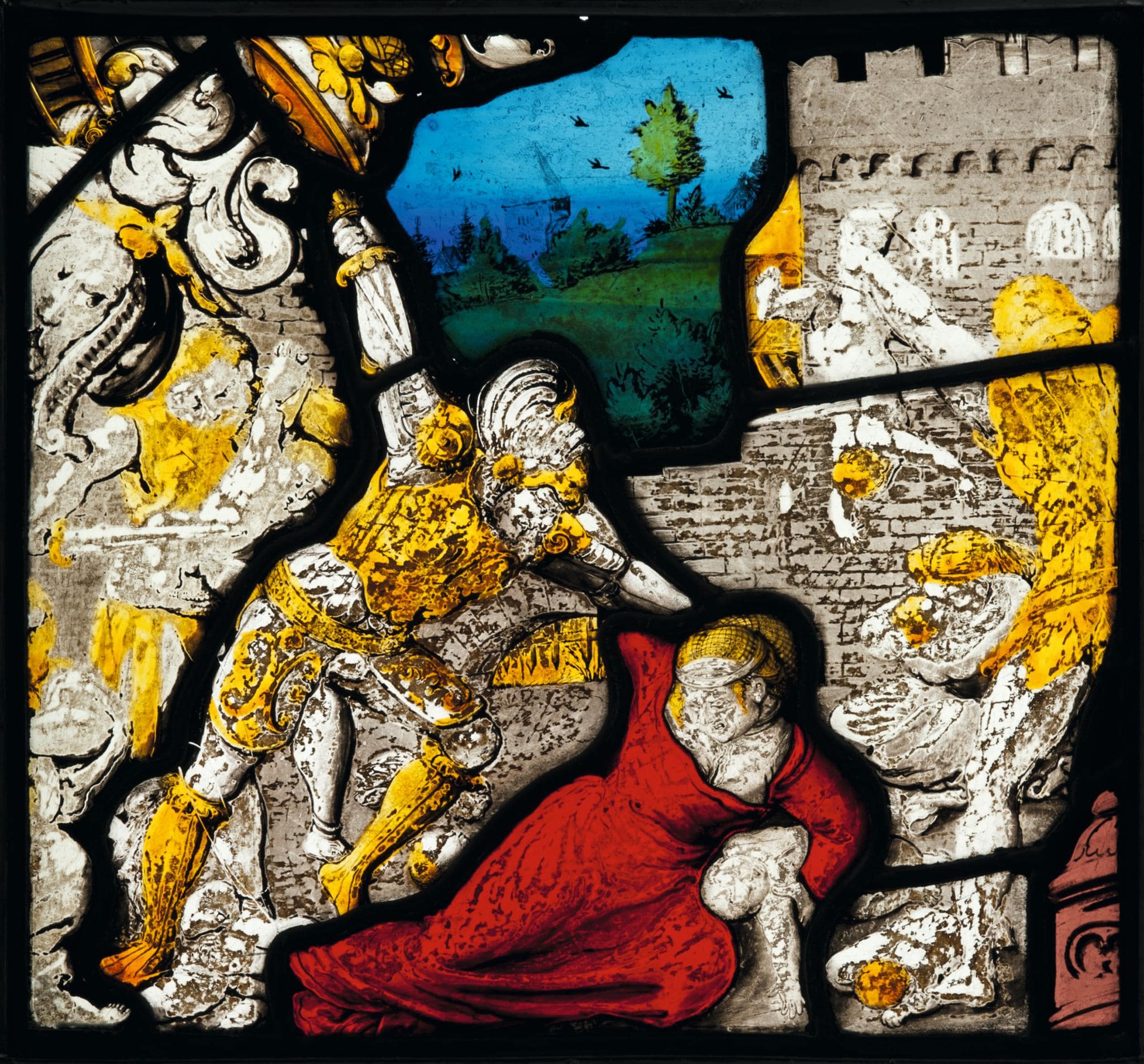 Bildscheibenfragment um 1540/50: Bethlehemischer · Fragment d’un vitrail figuratif: Le Massacre des Innocents