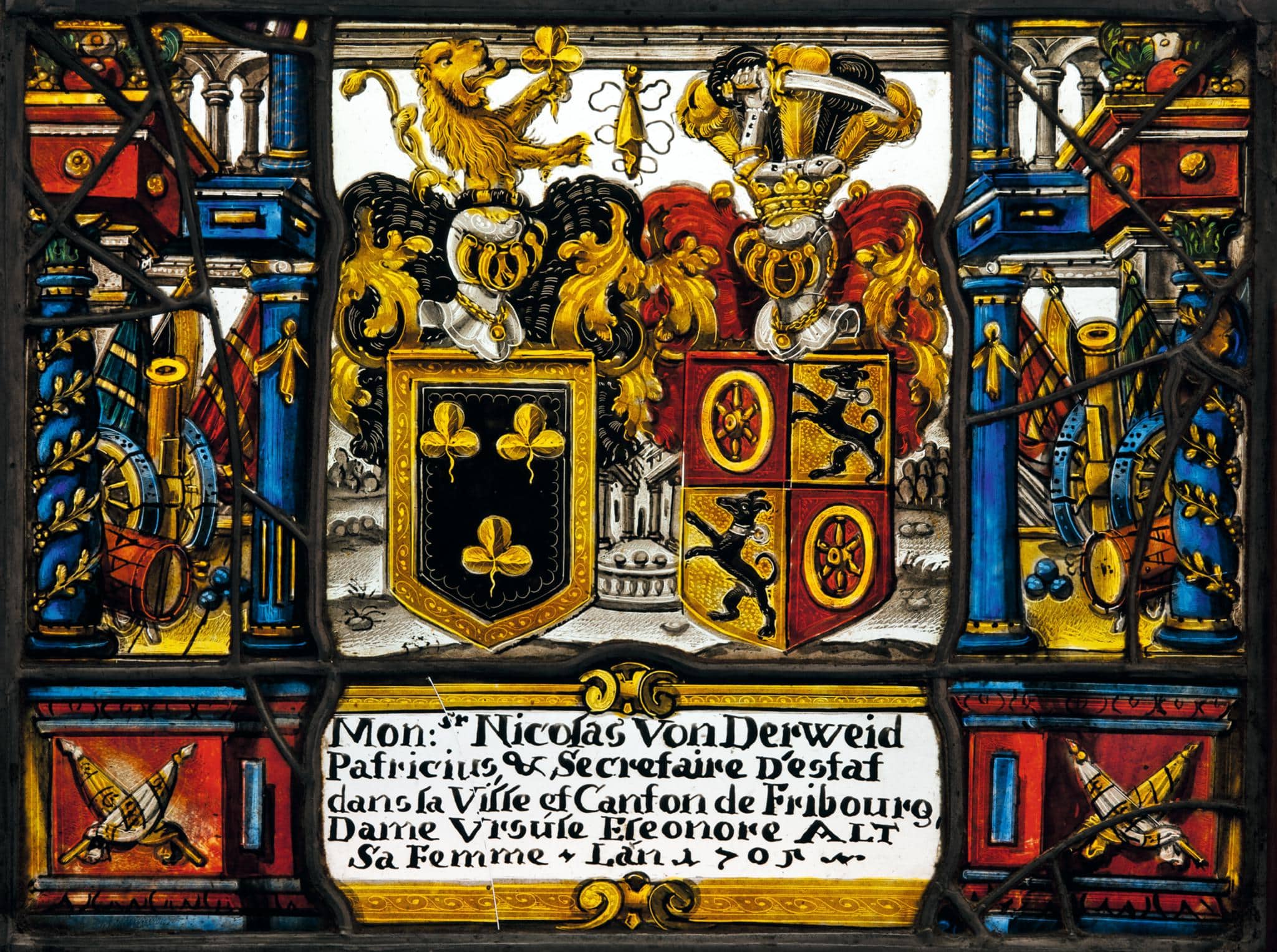 FR_408: Wappenscheibe Niklaus Von der Weid und Ursula Eleonora Alt 1705