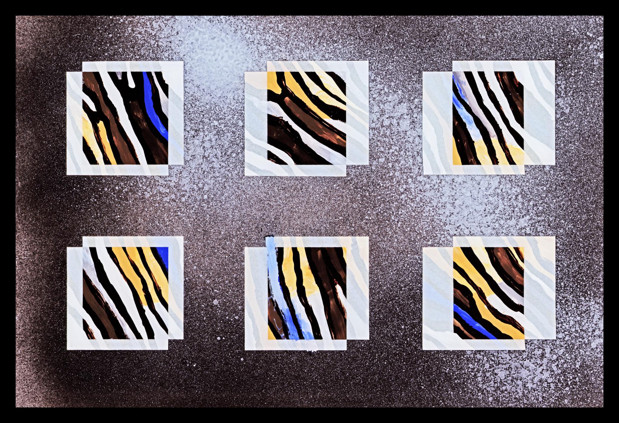 Über sechs Jahrzehnte hat Jochem Poensgen hauptsächlich monumentale, architekturbezogene Glasfenster geschaffen. Seit 2013 setzt er sich mit der besonderen Technik der Hinterglasmalerei auseinander. Für ihn erweist sich diese Kunstgattung als weitläufiges, fruchtbares Experimentierfeld für seine abstrakte Bildsprache. Er erkundet die Komplexität der Festlegung von Vorder- und Hintergrund, indem er während des Malprozesses die Dicke der Farbschicht variiert, die je nach Darstellung opak oder durchscheinend sein kann. Die Farben verschmelzen ineinander, manchmal überschneiden sie sich. Abstrakte, minimalistische Motive aus freien Formen werden mit geometrischer Strenge kombiniert, die das Wesen seiner Glasmalereien bildet. Die exakte Abgrenzung geometrischer Figuren und ihrer streifenartigen Struktur erfordern vom Künstler ein planmässiges Vorgehen in mehreren Arbeitsgängen.