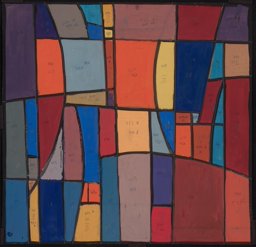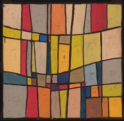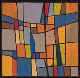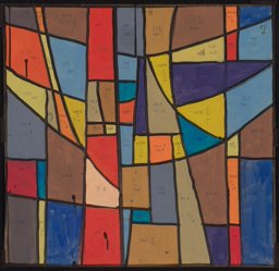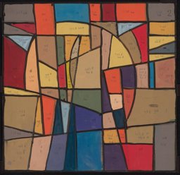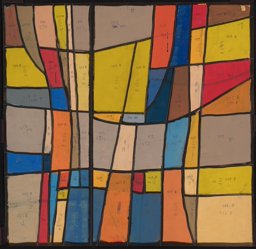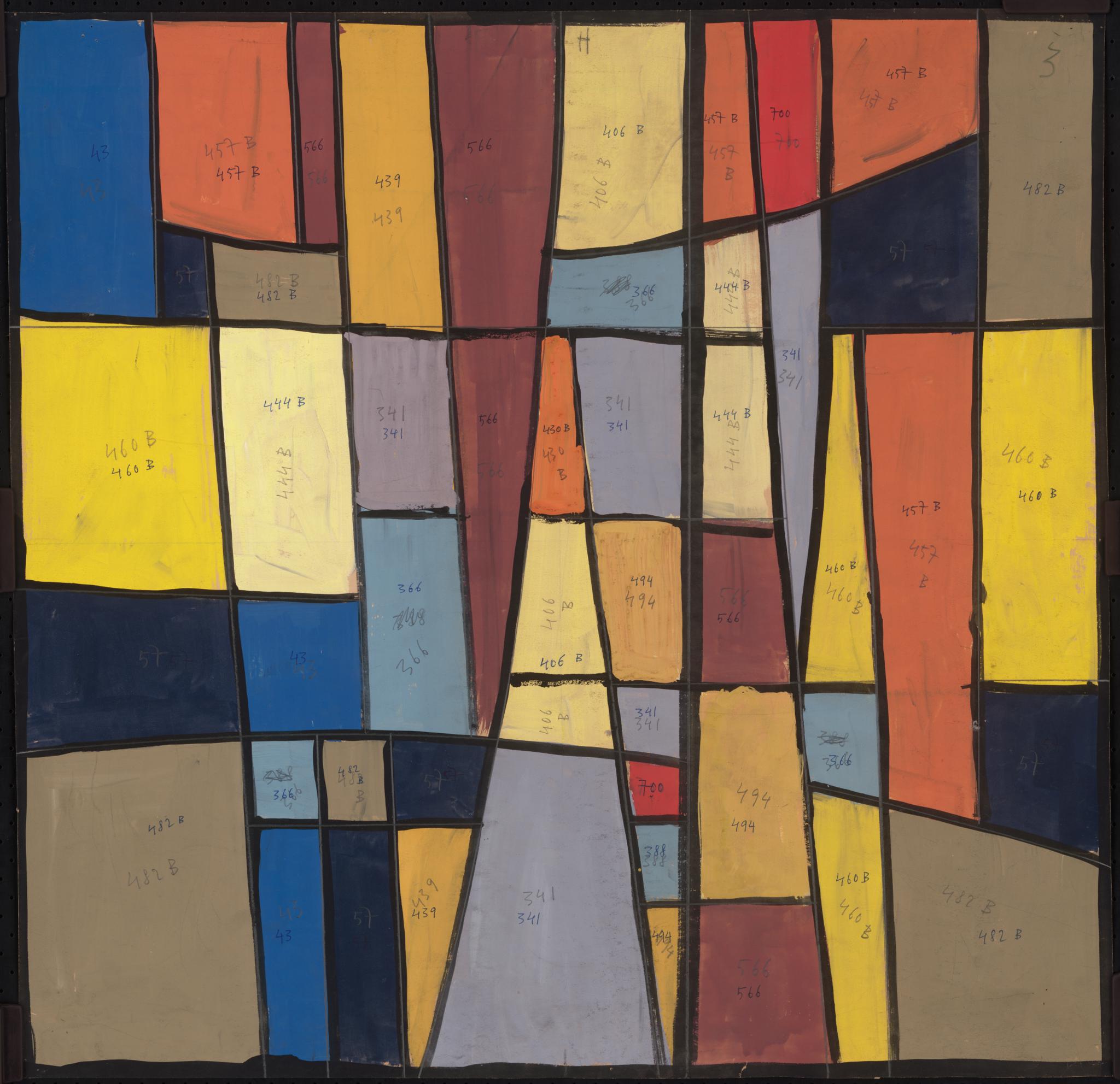 Ce carton de Bodjol est le projet définitif pour l'une des vingt verrières (GE_118.01) commandées en 1983 à l’artiste par Jean-Jacques Buard, alors pasteur de la paroisse protestante de Cointrin-Avanchet, pour orner les dix paires de fenêtres carrées du Centre communautaire oecuménique d'Avanchet. Celui-ci a été vendu en 2016 par les églises protestante et catholique à l’église pentecôtiste, qui a déposé l’ensemble des verrières, sauvé in extremis par l’Association pour la Promotion de l’Art Sacré (APAS) (Buard, 2018). La même année, six verrières ont été offertes par l’APAS à la chapelle des Crêts au Grand-Saconnex, deux en 2017 au Vitromusée Romont et cinq à la paroisse protestante d’Anières en 2018. Sept verrières, dont celle correspondant à ce carton, sont encore propriété de l'APAS et pourraient être offertes à d'autres paroisses qui souhaiteraient orner leur sanctuaire d'une ou plusieurs de ces verrières.