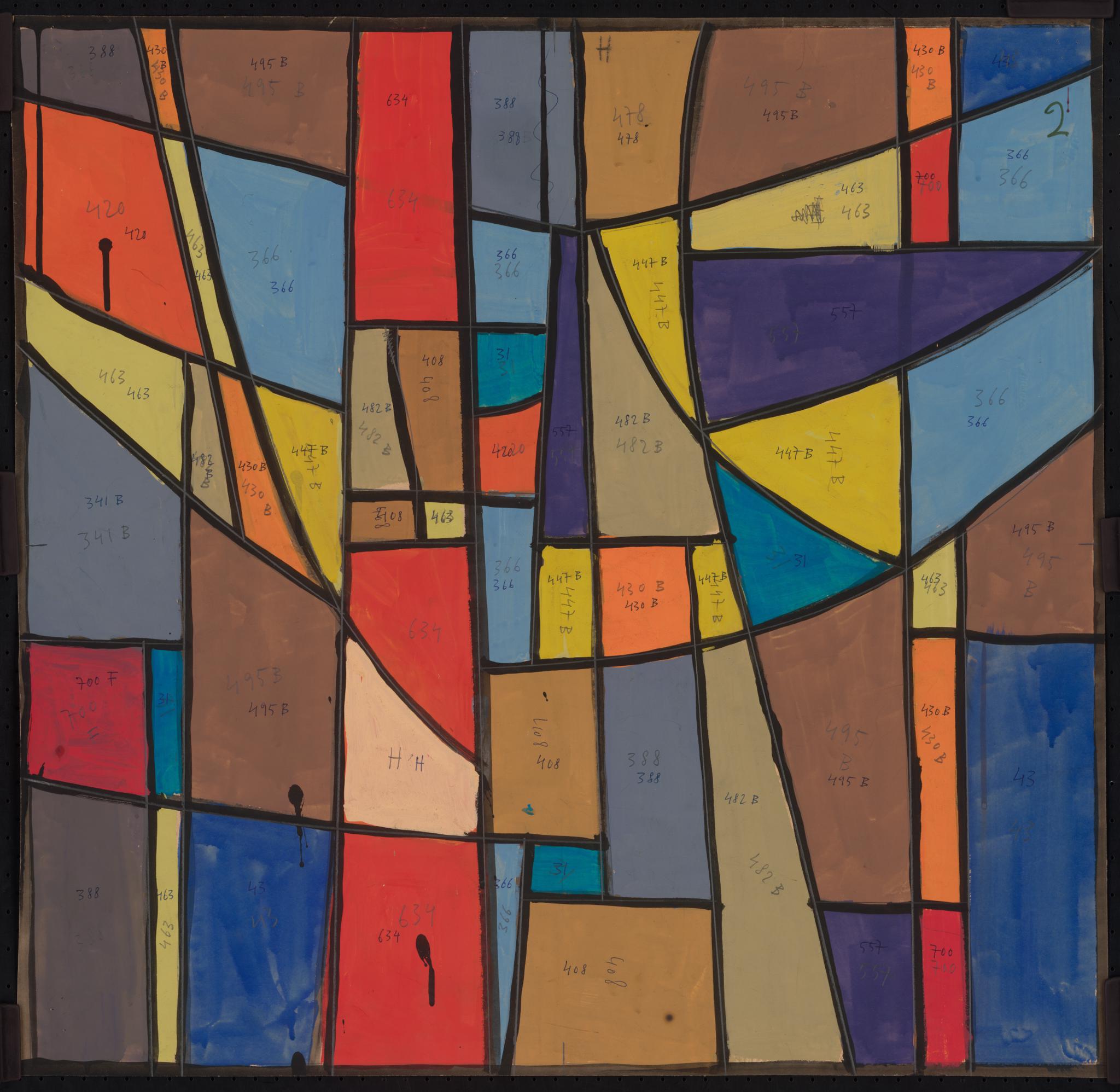 Ce carton de Bodjol est le projet définitif pour l'une des vingt verrières (GE_172.02) commandées en 1983 à l’artiste par Jean-Jacques Buard, alors pasteur de la paroisse protestante de Cointrin-Avanchet, pour orner les dix paires de fenêtres carrées du Centre communautaire oecuménique d'Avanchet. Celui-ci a été vendu en 2016 par les églises protestante et catholique à l’église pentecôtiste, qui a déposé l’ensemble des verrières, sauvé in extremis par l’Association pour la Promotion de l’Art Sacré (APAS) (Buard, 2018). La même année, six verrières ont été offertes par l’APAS à la chapelle des Crêts au Grand-Saconnex, dont celle correspondant à ce carton, deux en 2017 au Vitromusée Romont et cinq à la paroisse protestante d’Anières en 2018. Sept verrières sont encore propriété de l'APAS et pourraient être offertes à d'autres paroisses qui souhaiteraient orner leur sanctuaire d'une ou plusieurs de ces verrières.