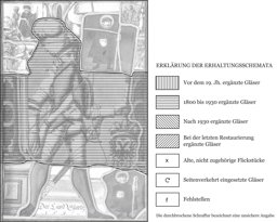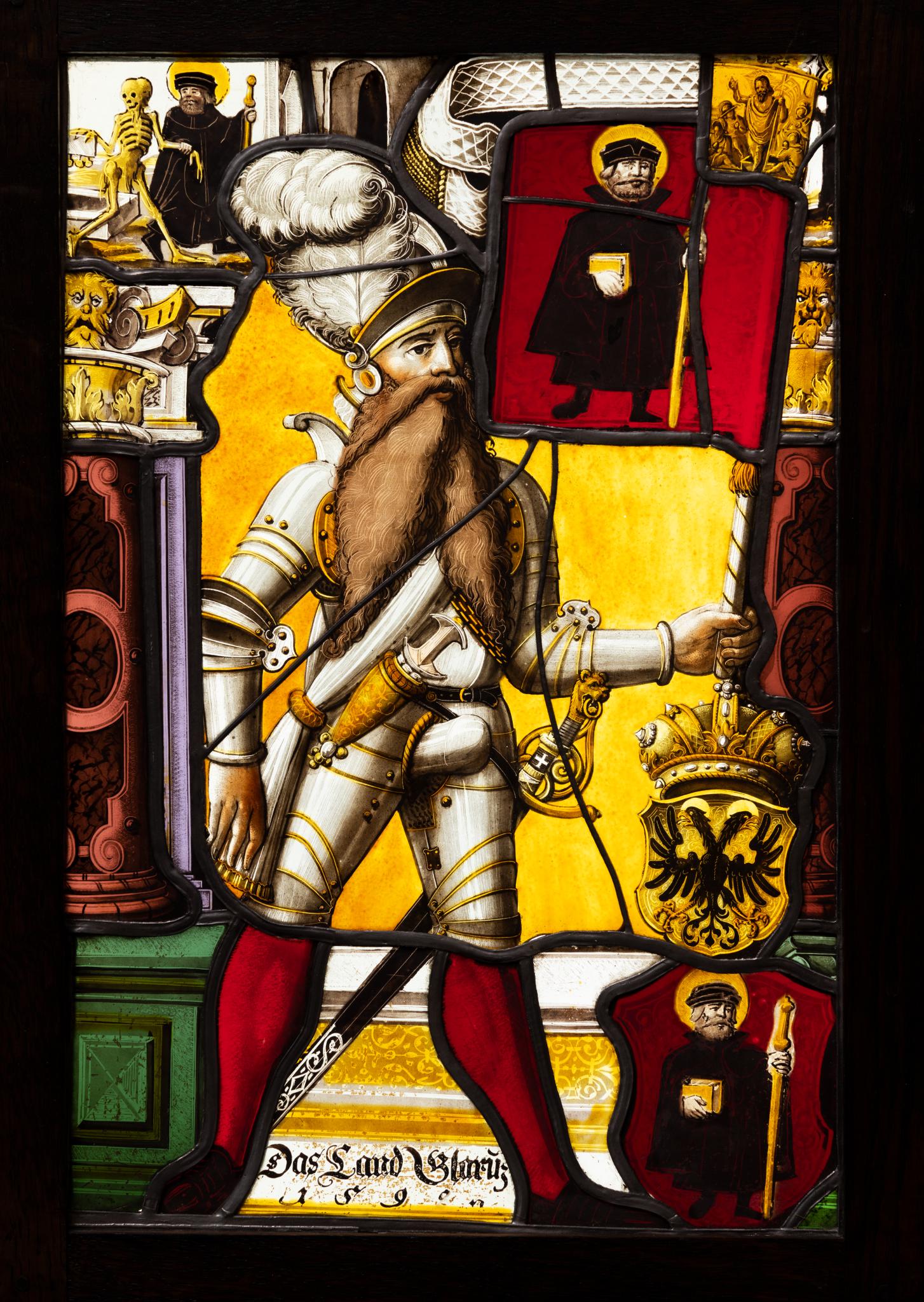 Vor gelbem Grund und beschrifteter Sockelmauer steht der langbärtige und geharnischte Bannerträger von Glarus. Er trägt rote Strümpfe, eine weisse Schärpe sowie am Gürtel Schwert und Schweizerdolch. Die rote Fahne in seiner Linken mit dem hl. Fridolin, dem Landespatron von Glarus, besitzt wie das diesem Ort 1512 verliehene Juliusbanner ein Eckquartier mit der Darstellung des auferstehenden Christus. Zu Füssen des mehrheitlich erneuerten Bannerträgers steht das vom bekrönten Reichsschild überhöhte Glarner Standeswappen. Die aus Pfeilern mit vorgesetzten Säulen bestehende Rahmenarchitektur ist ebenfalls fast vollständig erneuert. In der Bildecke oben links erscheint der hl. Fridolin im Beisein des vom Tode auferweckten Urso. Dieser weist die Urkunde vor, welche die Schenkung des Grundstücks für den Bau des Münsters in Säckingen bestätigt.