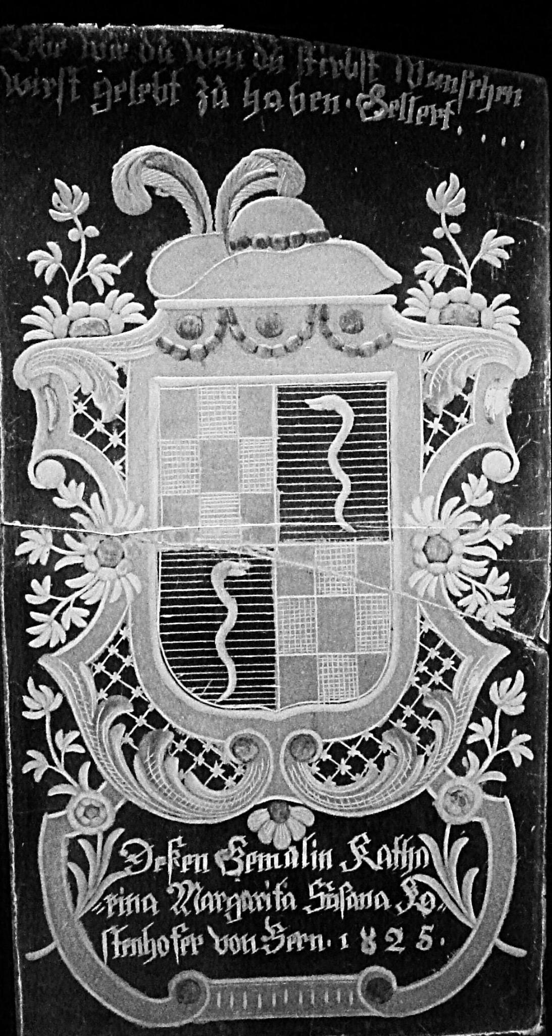 Katharina Margaretha Susanna Kasthofer (1769–1853), Tochter des Emanuel Gottlieb und der Rosina Susanna Chaillet, heiratete 1794 Daniel Hunziker (1763–1842), Sohn des Daniel und der Maria Rosina Michel (Kessel, 2019). Die Inschrift auf vorliegender Scheibe nimmt Bezug auf die verschollene Wappenscheibe ihres Ehemannes Daniel Hunziker.