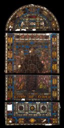 Ce vitrail en plein cintre provient de l’église évangélique réformée de Schüpfen (BE). Il s’agit du vitrail latéral gauche du chœur, réalisé en 1910, en même temps que le vitrail de droite (VMR_714). Deux ans auparavant, le vitrail central (VMR_283), également réalisé par Clément Heaton, avait déjà été installé.