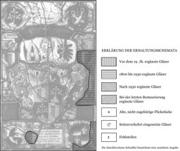 Vor farblosem, schnurverziertem Grund steht das Vollwappen Sebastian von Herbstheims. Darunter befindet sich die von zwei oval umkränzten Wappen begleitete Inschriftenkartusche. Pfeiler mit vorgelagerten Halbsäulen tragen einen roten Flachbogen. Darüber ist der hl. Sebastian, der Namenspatron des Stifters, bei seinem Martyrium dargestellt. Diese Szene flankieren zwei weitere oval umkränzte Wappen. Der von Pfeilen durchbohrte hl. Sebastian erscheint nochmals als Halbfigur in der über den Wappenschild emporragenden Krümme.