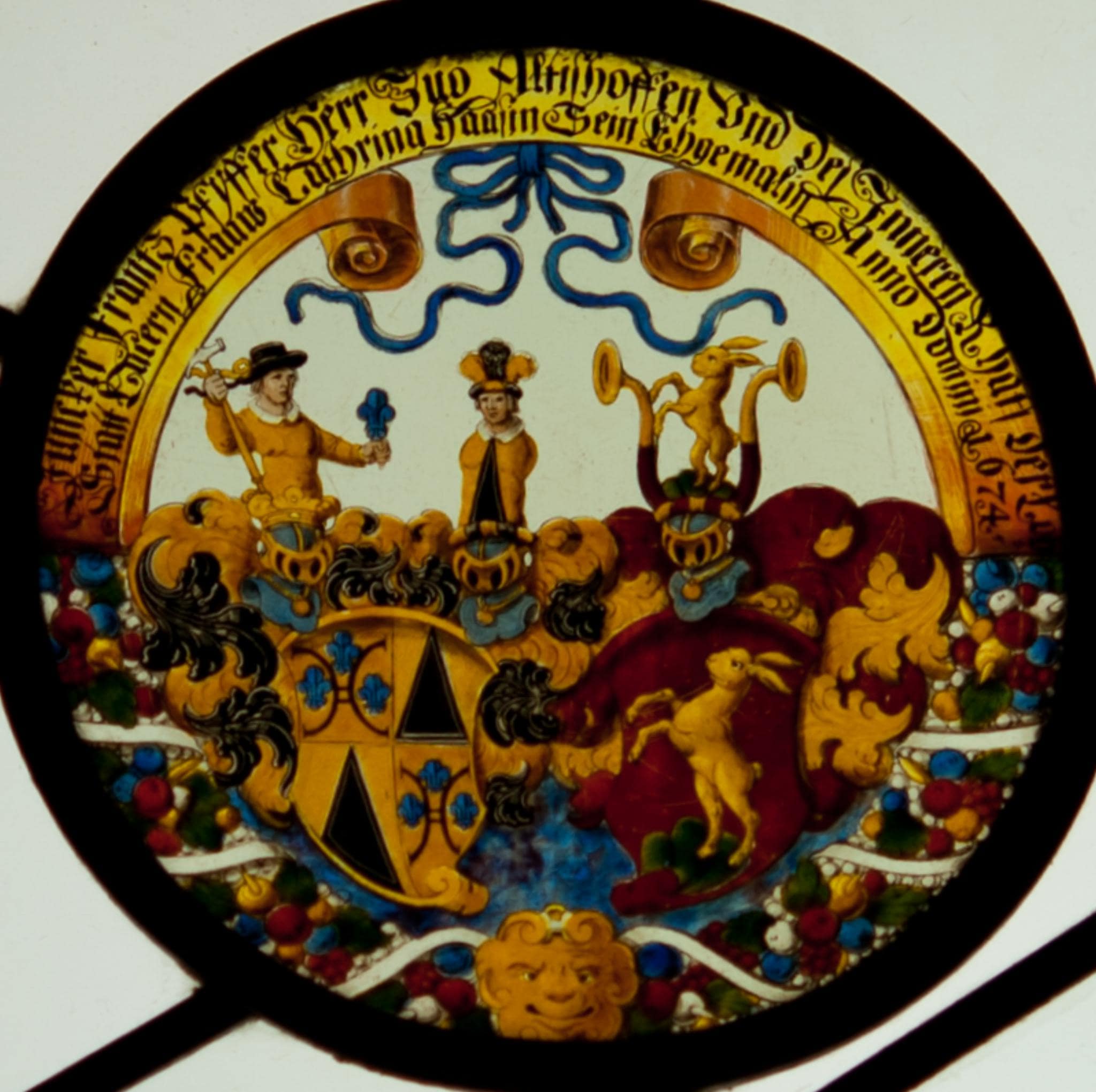 Juncker Frantz Pfyffer Herr zuo Altishoffen Vnd Des Jnneren Rhats Der Lob= / Statt Lucern Frauw Cathrina Haasin sein Ehgemalin Anno Domini 1674 ·
