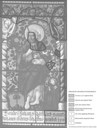 Bannwarts Scheibe von 1508 ist in das nördliche Chorfenster aus dem 19. Jahrhundert integriert. Sie zeigt den auf Wiesenboden vor schwarz-blauem Damastgrund stehenden Johannes den Täufer, einen der Kirchenpatrone sowie den Namenspatron des Stifters und des Johanniterordens. Der in Fellkleidung und einem roten Mantel dargestellte Heilige hält in seiner linken Hand das Lamm Gottes mit der Kreuzfahne. Zu seinen Füssen ist Johann Bannwart kniend in Johanniterkleidung und Gebetshaltung mit seinem Wappenschild festgehalten. Figuren und Wappen umfasst eine Arkade aus spiralig gedrehten Pfeilern und einem Astbogen mit Rankenwerk und sich kreuzenden, doppelt ausgeschweiften Fialen.