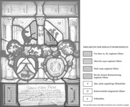 1726 wurde die paritätische Kirche von Weinfelden parallelchörig ausgebaut. Dazu lieferte nicht nur die Stadt Zürich als Herrschaftsherrin, sondern auch deren dortiger Obervogt Hans Kaspar Hirzel eine ansehnliche Beisteuer. Gleichzeitig verehrte dieser dorthin seine vorliegende Allianzwappenscheibe. Als für die Reformierten 1902/03 anstelle der Kirche von 1726 der heutige Zentralbau errichtet wurde, übernahm man dorthin Hirzels Glasgemälde aus dem Vorgängerbau. Laut der Publikation der Kirchenbaukommission von 1905 wurden damals mehrere Glasgemälde aus der alten Kirche in den Neubau übernommen, heute ist jedoch nur noch eines an Ort erhalten.