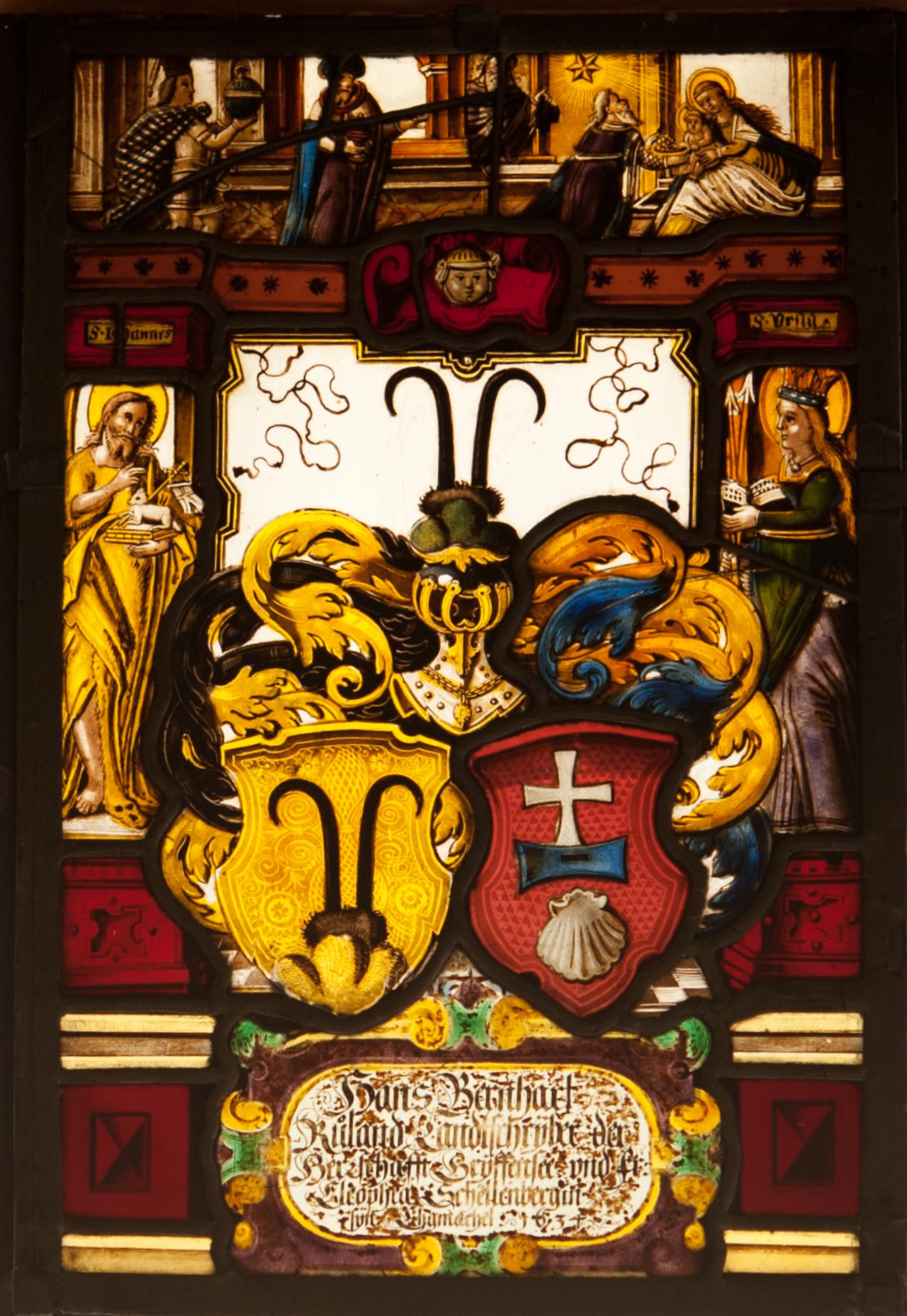 Hasler, R., & Keller, S. (2020). Wappenscheibe Hans Bernhard Ruland (Roland) und Kleopha Schellenberg mit den Heiligen Johannes und Ursula. Dans Vitrosearch. Consulté le 24 décembre 2025 de https://staging.vitrosearch.ch/objects/2659304.