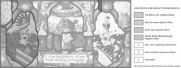 Wappen Mutschli, Ursula: Schrägrechts geteilt, von Schwarz mit goldener Hirschstange und von Gold; Helm: silbern mit goldenen Spangen; Helmdecke: golden und schwarz; Helmzier: ein wachsender Mannsrumpf mit schwarzer Zipfelmütze und in von Schwarz und Gold schrägrechts geteiltem Gewand mit der Hirschstange des Schildbilds.