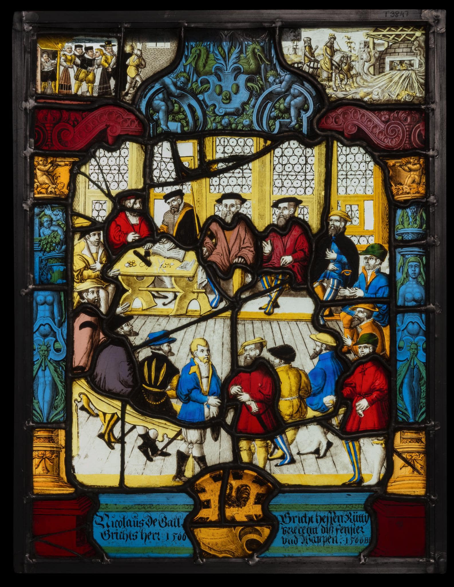 Nicolaus de Gall / Grichtsherr 1566 // Gricht hessenRütty / vererentt diβ fenster / vnd Wappen, 15·66