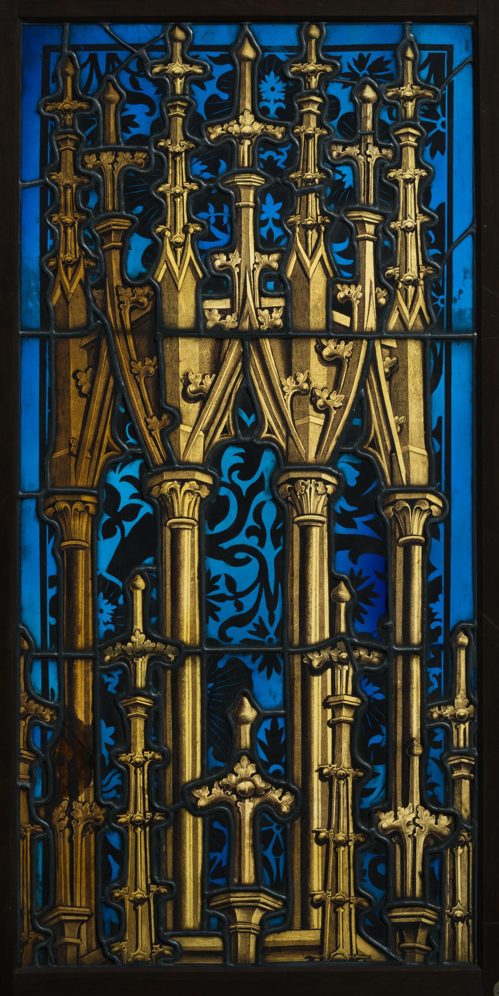 Farbiges Glas; Bemalung mit Schwarzlot.