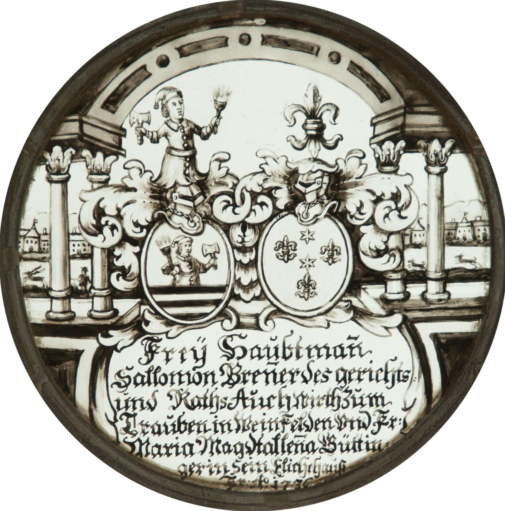 Runde Allianzwappenscheibe Salomon Brenner und Maria Magdalena Güttinger