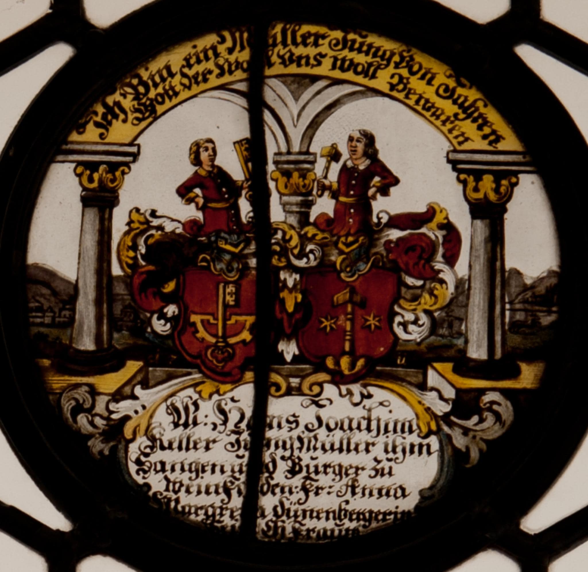 Runde Allianzwappenscheibe Hans Joachim Keller und Anna Margaretha Dünnenberger (Dünenberger)