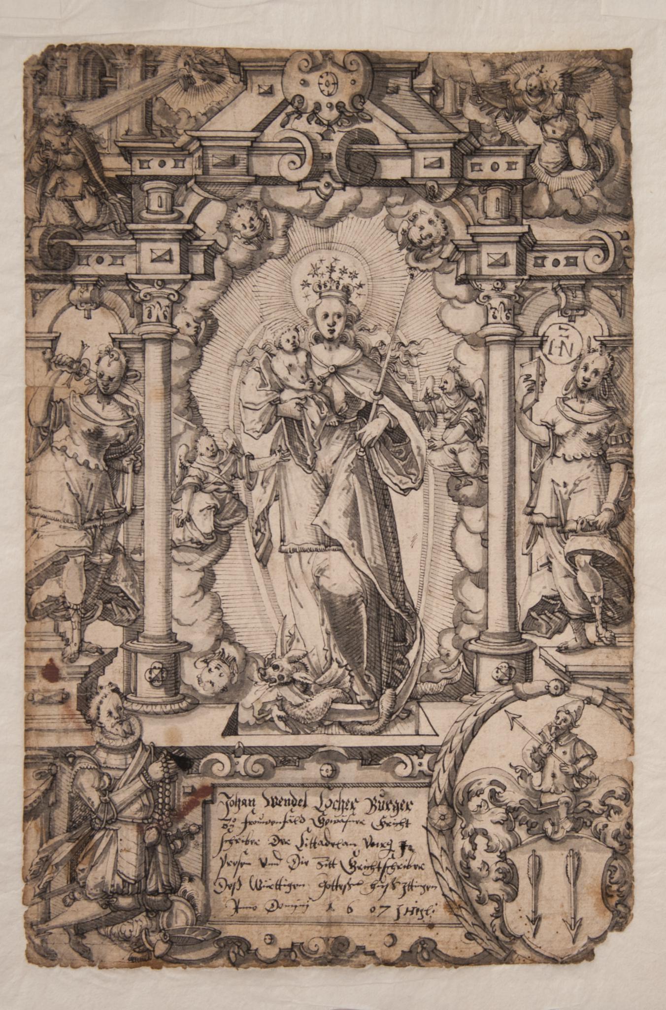 TG_1789: Riss zu Bildscheibe Johann (Hans) Wendel Locher mit der Muttergottes auf der Mondsichel