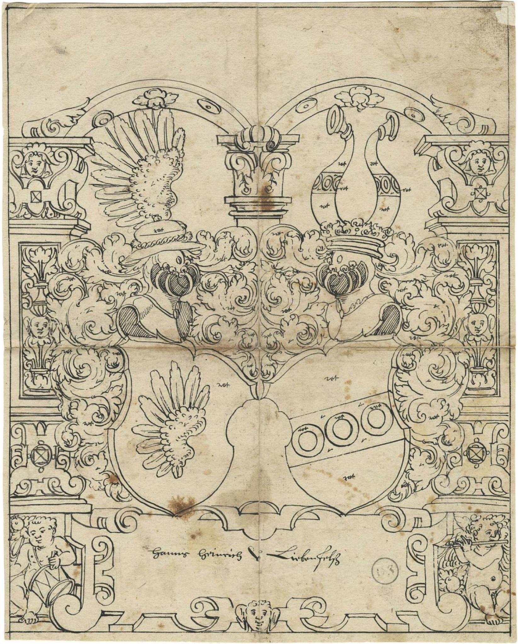 Im Laube-Katalog von 2012 wird die Zeichnung dem Schaffhauser Glasmaler Daniel Lang zugesprochen. Ihre stilistische Nähe zu den monogrammierten Entwürfen dieses Meisters (vgl. Hasler, 2010, S. 106f., Abb. 80–82) spricht für Langs Autorschaft, selbst wenn sich dessen zeichnerisches Schaffen vom demjenigen Hieronymus Langs des Älteren nicht immer klar abgrenzen lässt.