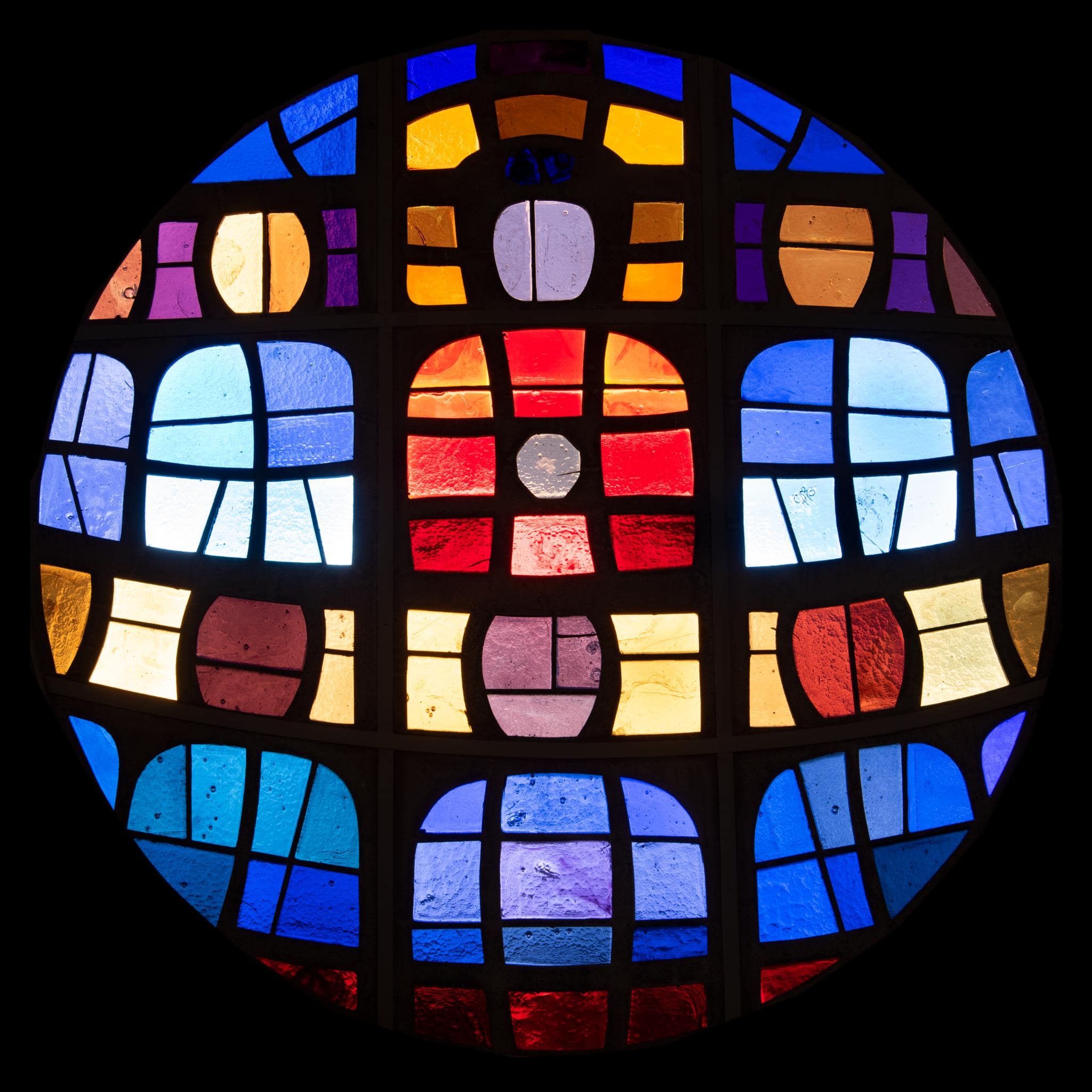 Laut seinem Schöpfer Fritz Weigner, strahlt “das runde blaue Fenster der Eucharistie mit seinen runden Formen [...] das Brotbrechen, die Tischgemeinschaft von Christus mit der Gemeinde” aus (Moosbrugger, 1986, S. 122).