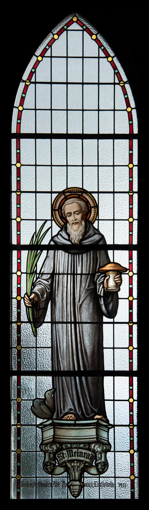 Nach dem Brand der alten paritätischen Kirche und der Auflösung des paritätischen Verhältnisses beauftragte die katholische Kirchgemeinde den Architekten Albert Rimli mit der Errichtung einer neuen Kirche. Im April 1912 legte der Architekt die im Detail ausgearbeiteten Pläne vor. Dabei kamen auch die Kirchenfenster zur Sprache. Um die beiden Figurenfenster links und rechts vom Hochalter mit einer reicheren Bemalung ausstatten zu können und dennoch einen “genügend und freundlich” beleuchten Chorraum zu erhalten, beschloss man, ein drittes Fenster auf der Nordseite des Chors einzusetzen. Um eine grössere Lichtfülle zu erzielen, empfahl der Architekt, die Schifffenster einzig mit Medaillons zu versehen (StATG, KKG 31, B.13.4.5/3, Protokoll der Sitzung der Baukommission vom 9.4.1912). Der Architekt selbst erklärte sich bereit, ein Schifffenster zu stiften und empfahl für deren Ausführung die Firma Zettler in München, vertreten durch Herrn Meyner in Winterthur (StATG, KKG 31, B.17.2.4/4, Brief von Arch. Rimli an Pfarrer Brühwyler vom 11.4.1912). Im November 1912 begutachtete die Baukommission die von verschiedenen Firmen eingereichten Skizzen. Den Zuschlag erhielten Lütz & Elmpt in Konstanz, deren Vorschläge am ehesten das Ziel erfüllten, einen möglichst hellen Kirchenraum zu erhalten (StATG, KKG 31, B.13.4.5/3, Protokoll der Sitzung der Baukommission vom 25.11.1912). Im Dezember 1912 kam es zum Vertragsabschluss. Festgelegt wurden u. A. die Preise für zwei Figurenfenster im Chor (je 400 Fr.), sechs Figurenfenster im Schiff (je 350 Fr.), drei Zierrahmenfenster (je 130 Fr.) und das Rundfenster oberhalb der Orgel (175 Fr.). Ebenfalls bestimmte man die Heiligen, die in Chor und Schiff dargestellt werden sollten. Die Fenster sollten nach Genehmigung der Skizzen bis Anfang April 1913 geliefert werden (StATG, KKG 31, B.17.2.4/2, Vertrag vom 2.12.1912 zwischen der katholischen Kirchenbaukommission Mammern und der Glasmalerei-Firma Lütz & Elmpt in Konstanz). Zuletzt wurde beschlossen, Schutzgitter für die Gemäldefenster in Auftrag zu geben (StATG, KKG 31, B.13.4.5/3, Protokoll der Sitzung der Baukommission vom 26.4.1913).