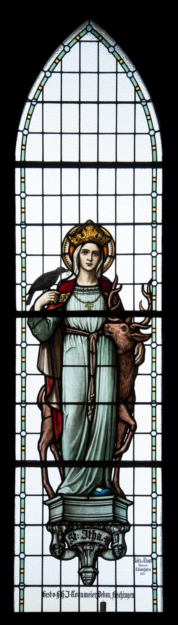 Nach dem Brand der alten paritätischen Kirche und der Auflösung des paritätischen Verhältnisses beauftragte die katholische Kirchgemeinde den Architekten Albert Rimli mit der Errichtung einer neuen Kirche. Im April 1912 legte der Architekt die im Detail ausgearbeiteten Pläne vor. Dabei kamen auch die Kirchenfenster zur Sprache. Um die beiden Figurenfenster links und rechts vom Hochalter mit einer reicheren Bemalung ausstatten zu können und dennoch einen “genügend und freundlich” beleuchten Chorraum zu erhalten, beschloss man, ein drittes Fenster auf der Nordseite des Chors einzusetzen. Um eine grössere Lichtfülle zu erzielen, empfahl der Architekt, die Schifffenster einzig mit Medaillons zu versehen (StATG, KKG 31, B.13.4.5/3, Protokoll der Sitzung der Baukommission vom 9.4.1912). Der Architekt selbst erklärte sich bereit, ein Schifffenster zu stiften und empfahl für deren Ausführung die Firma Zettler in München, vertreten durch Herrn Meyner in Winterthur (StATG, KKG 31, B.17.2.4/4, Brief von Arch. Rimli an Pfarrer Brühwyler vom 11.4.1912). Im November 1912 begutachtete die Baukommission die von verschiedenen Firmen eingereichten Skizzen. Den Zuschlag erhielten Lütz & Elmpt in Konstanz, deren Vorschläge am ehesten das Ziel erfüllten, einen möglichst hellen Kirchenraum zu erhalten (StATG, KKG 31, B.13.4.5/3, Protokoll der Sitzung der Baukommission vom 25.11.1912). Im Dezember 1912 kam es zum Vertragsabschluss. Festgelegt wurden u. A. die Preise für zwei Figurenfenster im Chor (je 400 Fr.), sechs Figurenfenster im Schiff (je 350 Fr.), drei Zierrahmenfenster (je 130 Fr.) und das Rundfenster oberhalb der Orgel (175 Fr.). Ebenfalls bestimmte man die Heiligen, die in Chor und Schiff dargestellt werden sollten. Die Fenster sollten nach Genehmigung der Skizzen bis Anfang April 1913 geliefert werden (StATG, KKG 31, B.17.2.4/2, Vertrag vom 2.12.1912 zwischen der katholischen Kirchenbaukommission Mammern und der Glasmalerei-Firma Lütz & Elmpt in Konstanz). Zuletzt wurde beschlossen, Schutzgitter für die Gemäldefenster in Auftrag zu geben (StATG, KKG 31, B.13.4.5/3, Protokoll der Sitzung der Baukommission vom 26.4.1913).