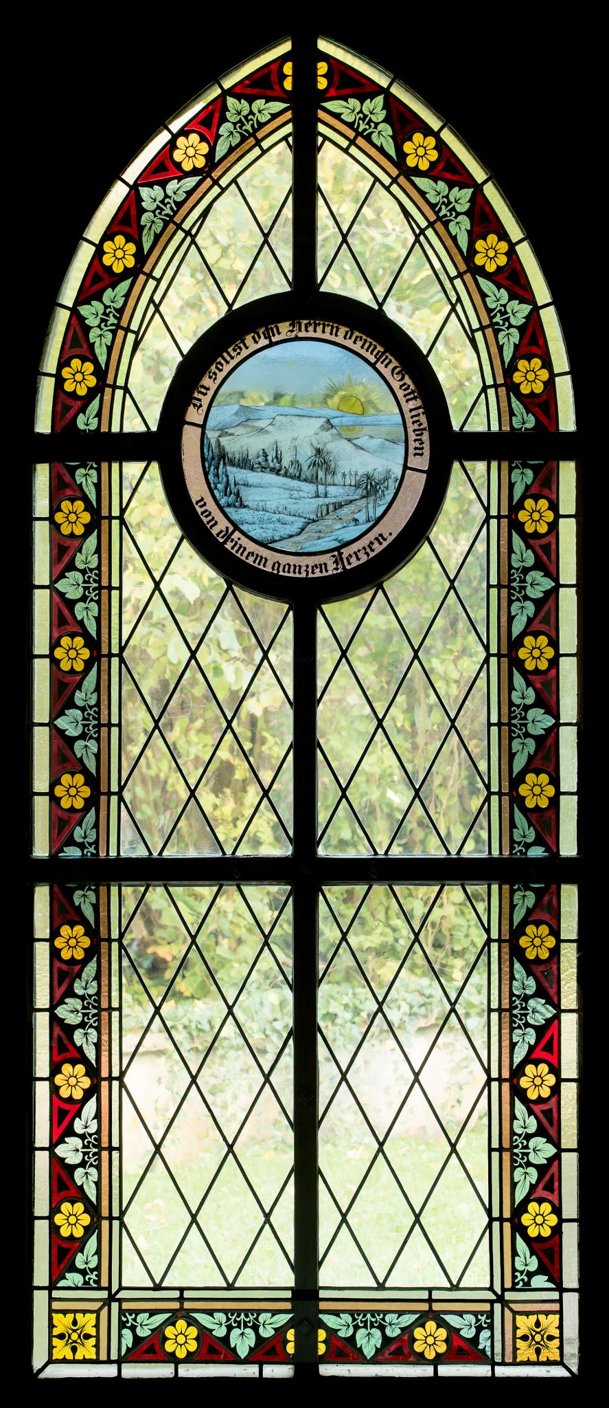 Zwischen 1891 und 1894 schuf Karl Wehrli für die evangelische Kirche von Hüttlingen zwei Chorfenster und vier Schifffenster mit Medaillons im Bogenfeld sowie zwei Emporenfenster mit ornamentaler Rahmung.