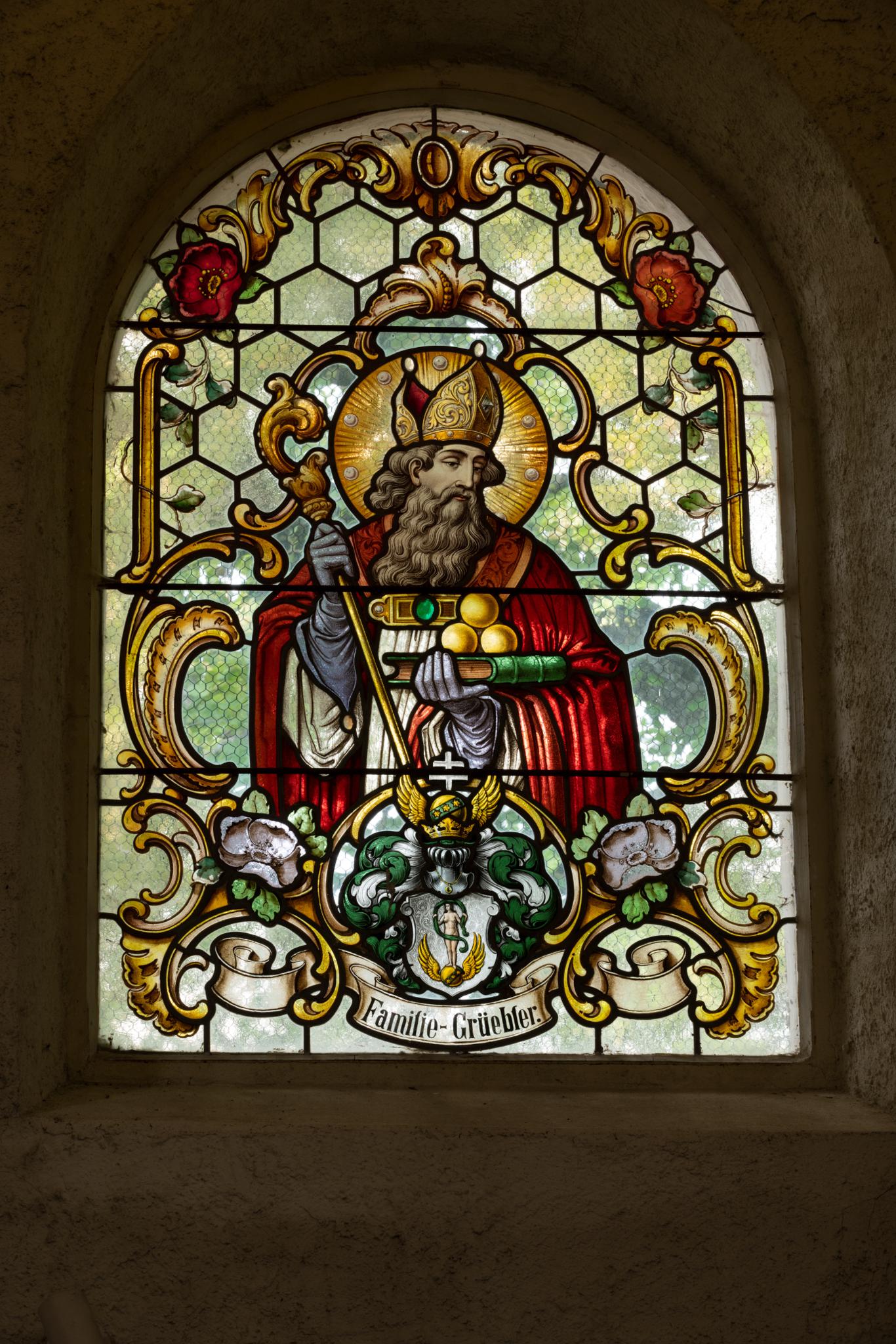 Anlässlich der Renovation der 1633 erbauten Kapelle von Gärtensberg schuf Friedrich Berbig 1908 sechs neue Rundbogenfenster, zwei davon mit Heiligenfiguren. Für diese Ausstattung hatte sich der Kinderpfarrer Adolf Lanter eingesetzt und Beiträge mehrerer Familien der Stadt Wil zur Deckung der 1800 Fr. gewinnen können (Kath. Kirchgemeindearchiv Wil, 03.02 Verhandlungsprotokoll Kirchenvorstandsrat, Bd. V 11.09.1902–29.06.1915, S. 162). Die dargestellten Heiligen Agatha und Nikolaus sind die Patrone der Stadt Wil, deren Rat die Kapelle ursprünglich erbaut hatte.