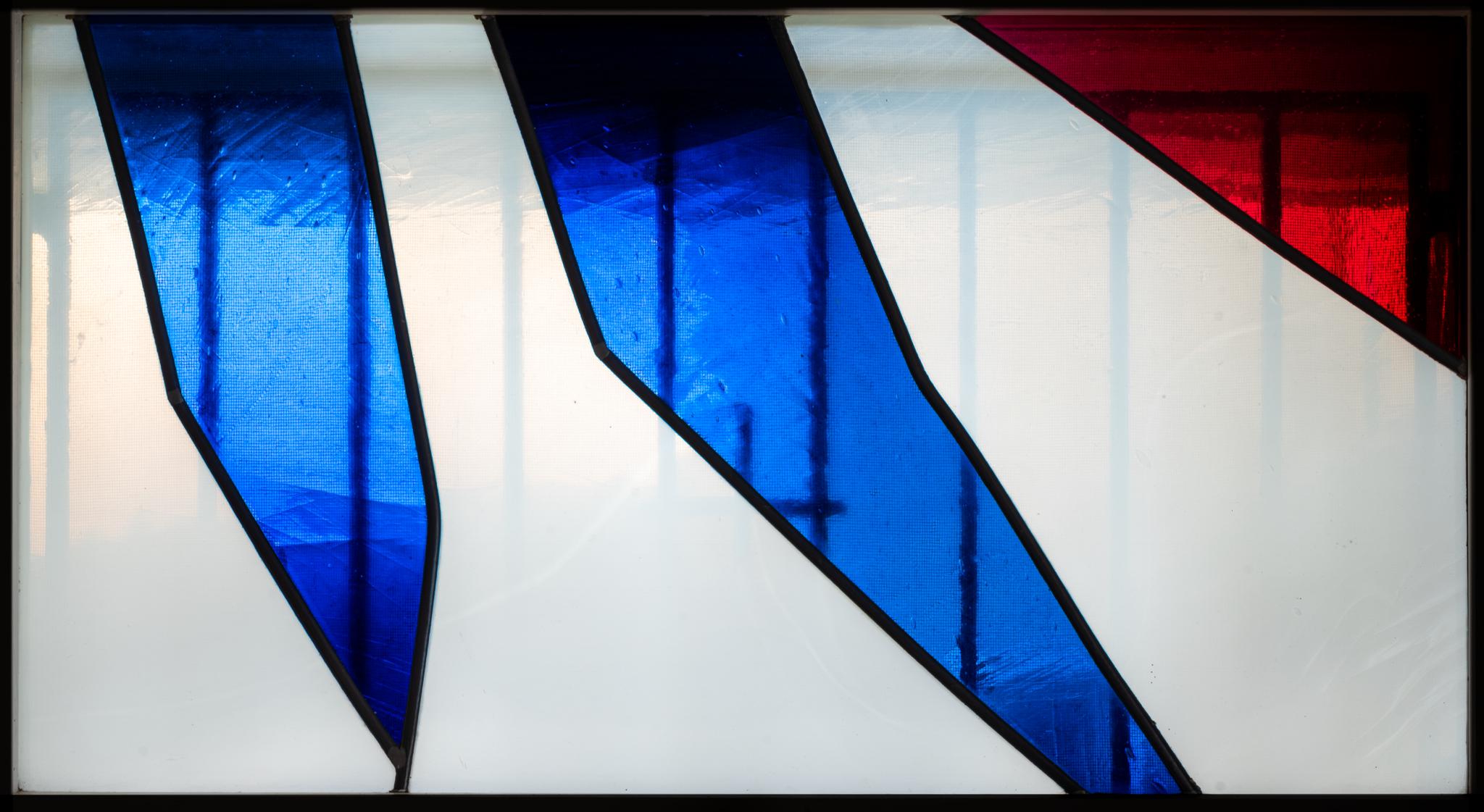 Kleines Fenster in Weiss, Blau und Rot, welches das grosse Fenster (TG_968) ergänzt.