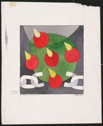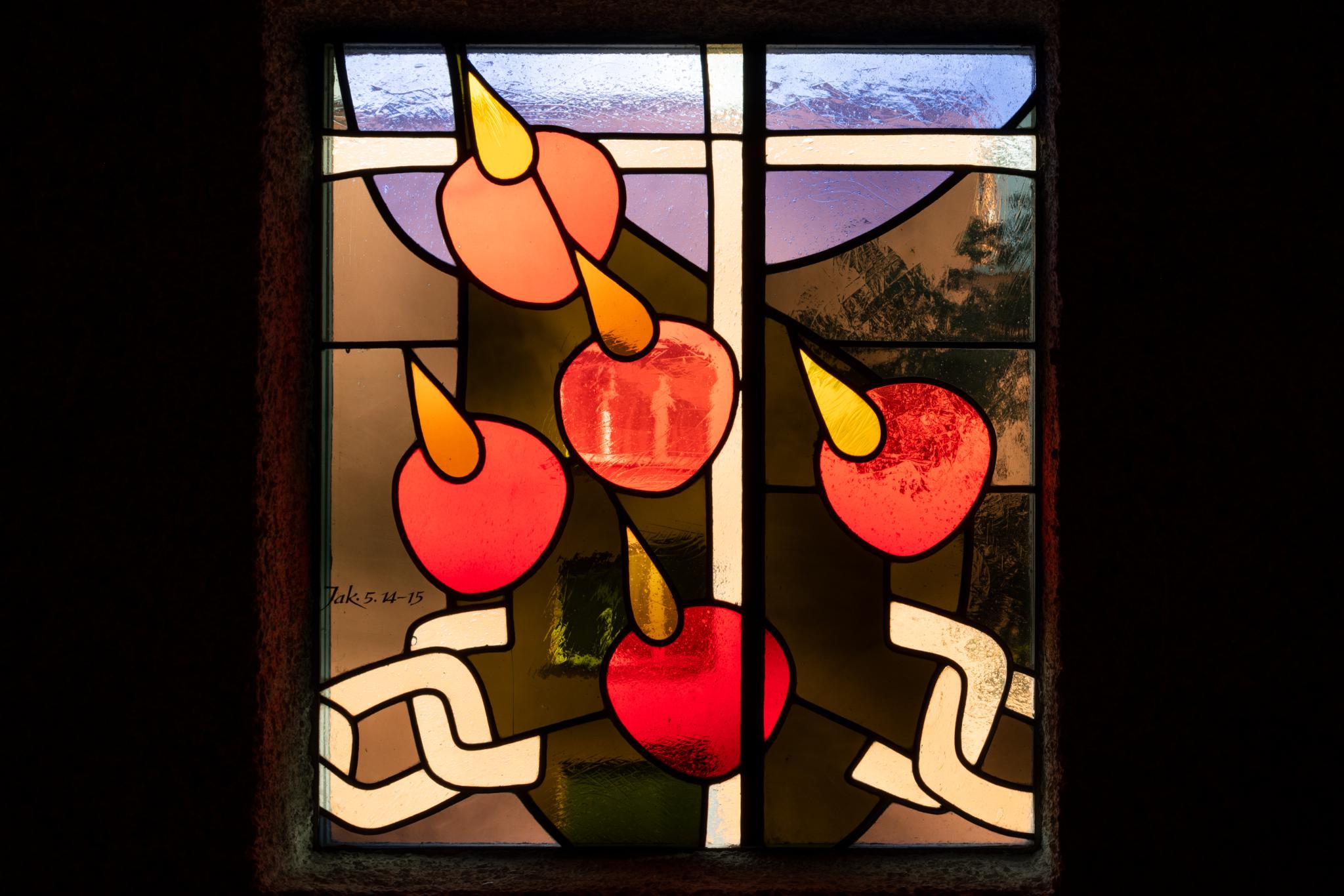 Im Vergleich mit dem dazu erhaltenen Entwurf (HS_765) ergänzte Heinrich Stäubli die Glasmalerei um ein weisses Kreuz, entsprechend der grundlegenden Komposition dieses Fensterzyklus, und passte die Farbgestaltung an verschiedenen Stellen an.
