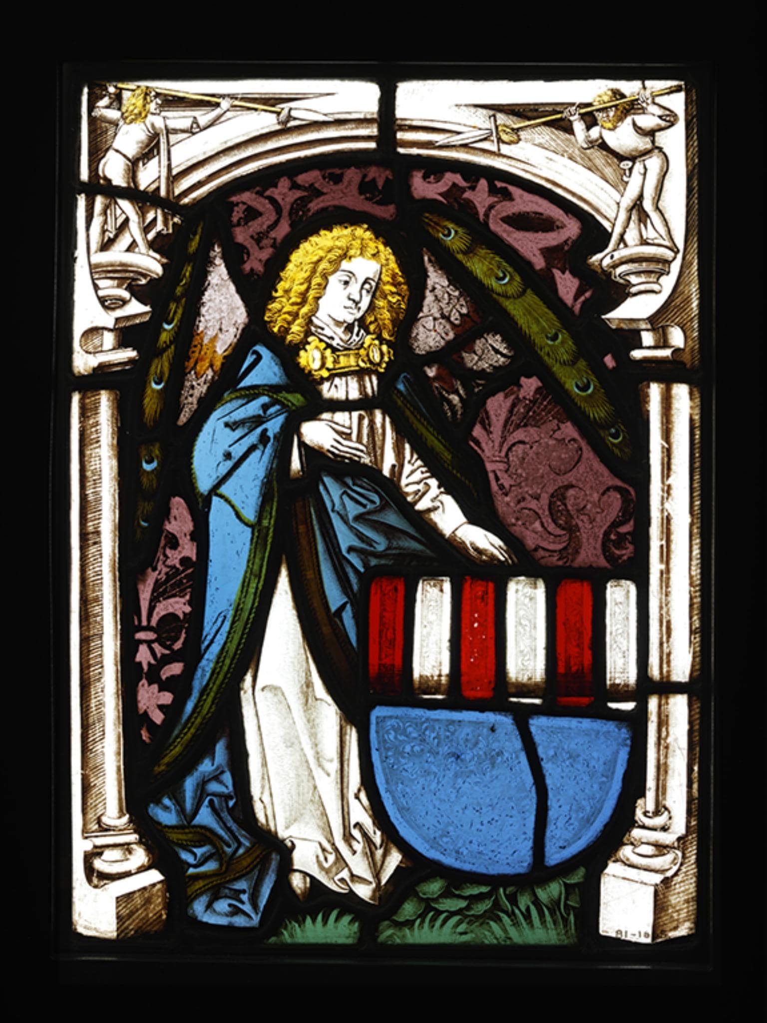 Provenant de la collection du banquier, diplomate et collectionneur d’art suisse James-Alexandre de Pourtalès (1776-1855), dit à partir de 1813 de Pourtalès-Gorgier, le vitrail et son pendant (VAM inv. 82-1865, VAM_111) ont été acquis par le Victoria and Albert Museum lors de la vente de la collection d’antiques et de tableaux de ce dernier, organisée le 6 février 1865 et jours suivants par ses enfants dans son hôtel particulier, rue Tronchet, à Paris (Cat. vente Paris 1865, lot 1821). Lors de son entrée dans les collections du musée, ce vitrail était considéré de l’école suisse voire allemande et daté vers 1490, une attribution et une datation conservéee jusque dans le premier quart du XXe siècle (Cat. collection Londres 1868, p. 27 ; Day 1913, p. 105).