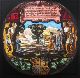 Acquis sur le marché de l’art en 1863 par le Victoria and Albert Museum, ce vitrail était considéré lors de son entrée dans les collections du musée comme suisse et daté vers 1570 (V&A, documentation, état du 20 décembre 2013 ; Cat. coll. Londres 1863 (1868), p. 32).