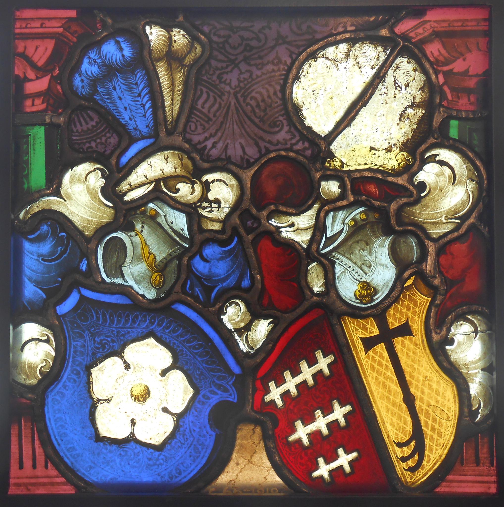Fragment de vitrail héraldique aux armes des Sury et des Byss de Soleure