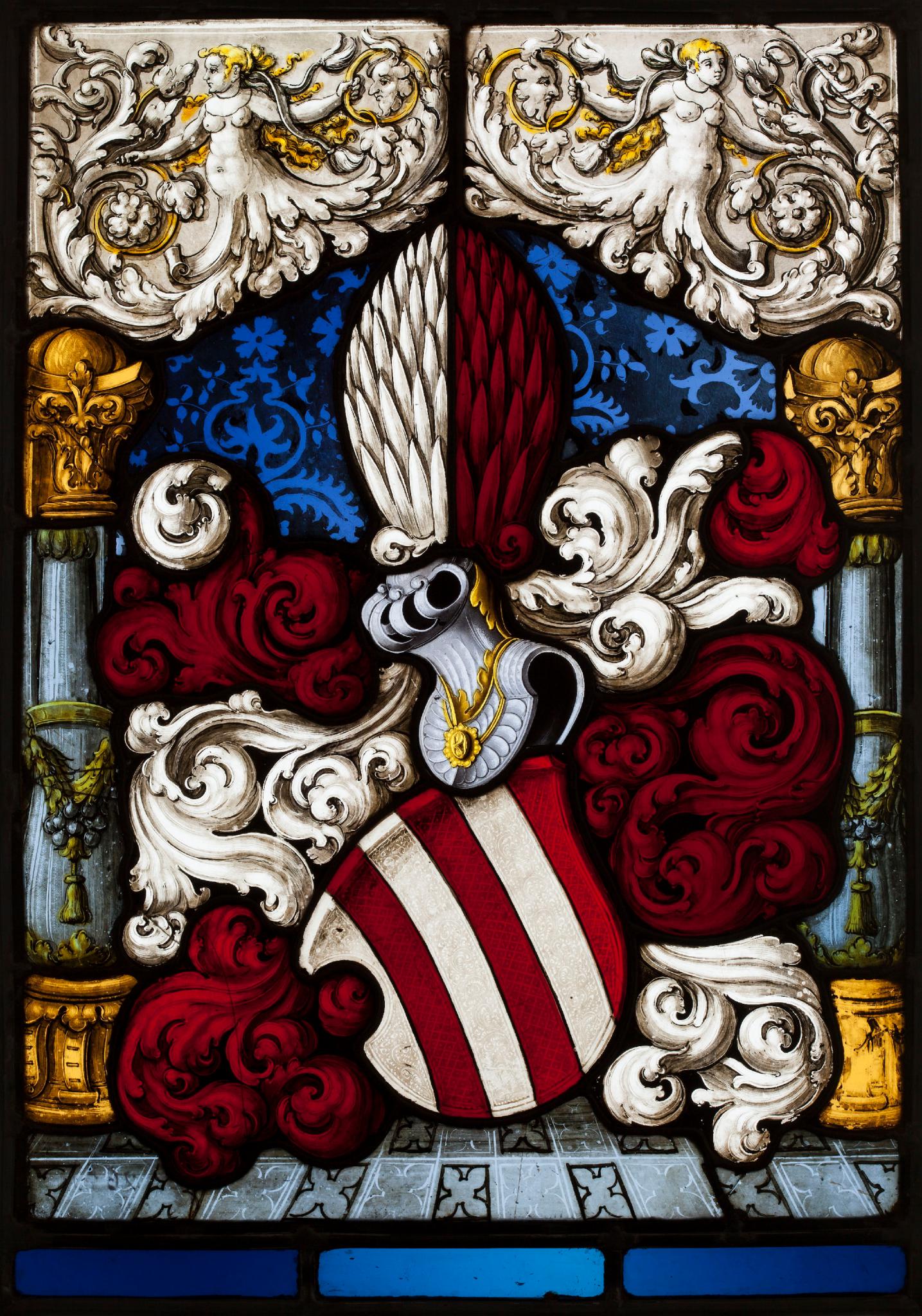 Das Wappen ist dasjenige der Freiburger Adelsfamilie de Vuippens (von Wippingen). Aufgrund der fehlenden Stifterinschrift lässt sich nicht sagen, welches Mitglied dieser Familie die Scheibe in Auftrag gegeben hat.