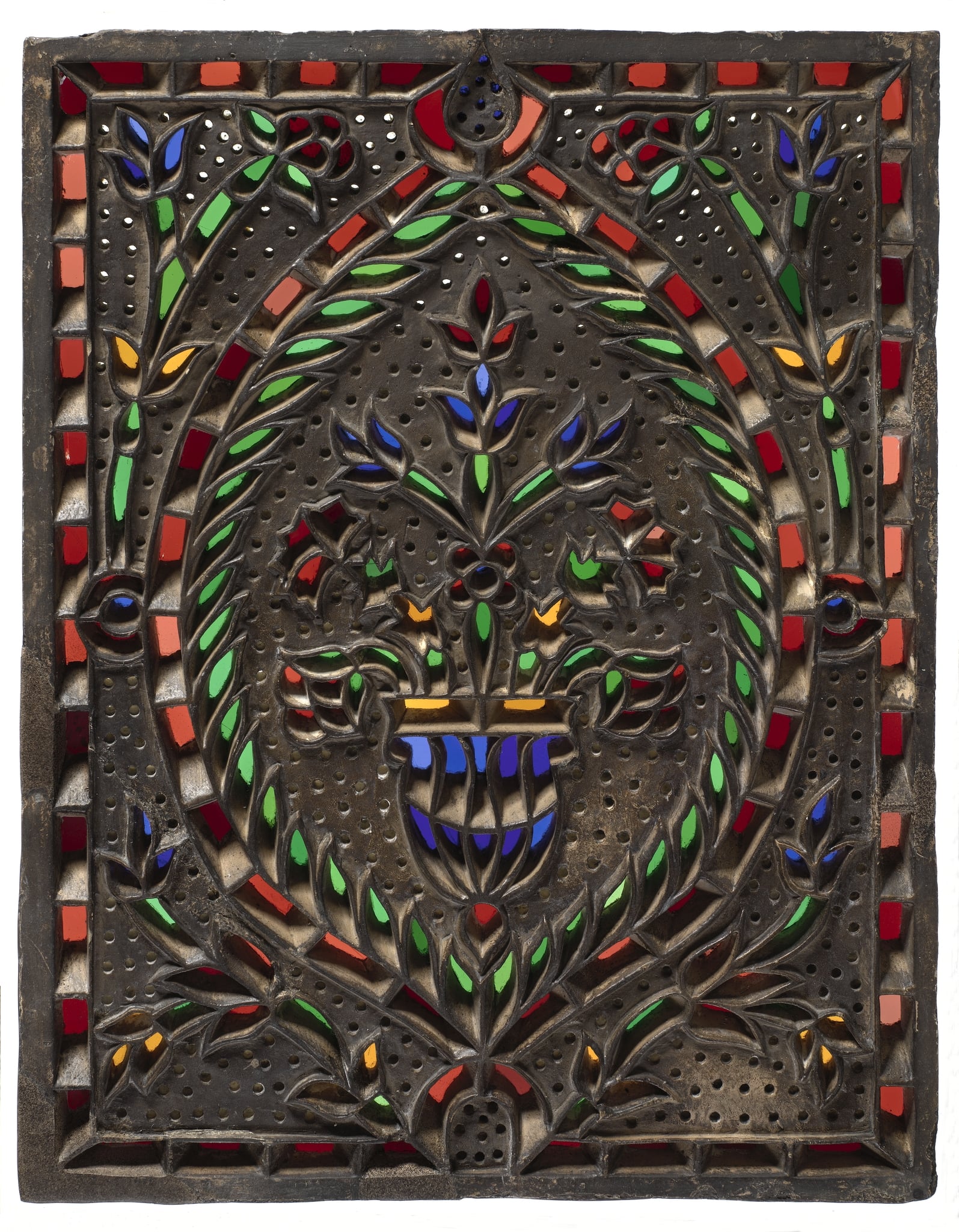 The colours and material properties of the glass and the latticework – although heavily restored – suggest that the window dates to the late 19th century. This assumption is supported by the results of an analytical study of glass from two stucco and glass windows from the Louvre collection (OA 7466/7, OA 7466/25) conducted by a team from the Musée du Louvre (Fellinger et al., 2022).